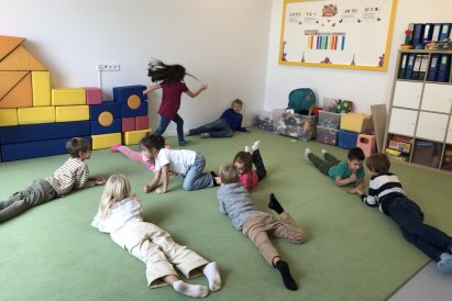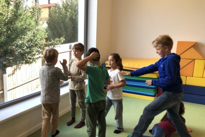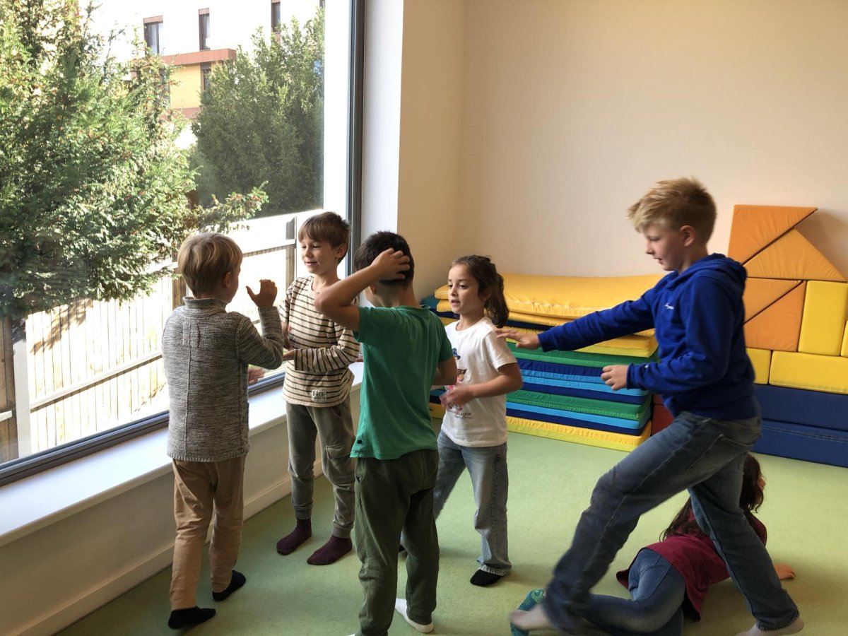 Pak přišel čas pěveckého kroužku a chvilky venku na čerstvém vzduchu. Sluníčko nám dnes nádherně svítilo, listí pomalu mění barvy a podzim je cítit na každém kroku.
