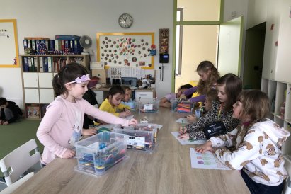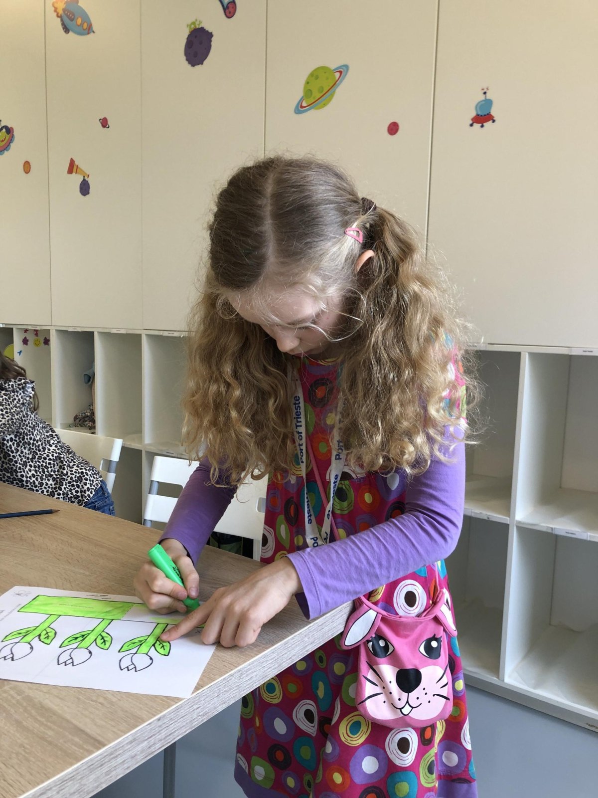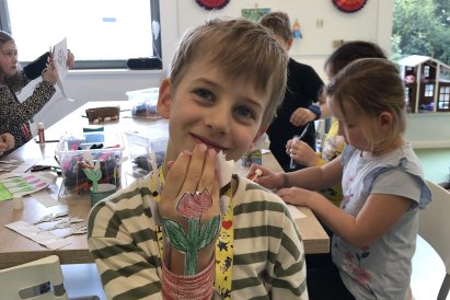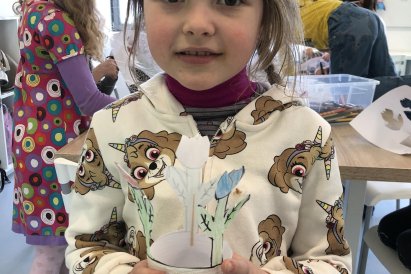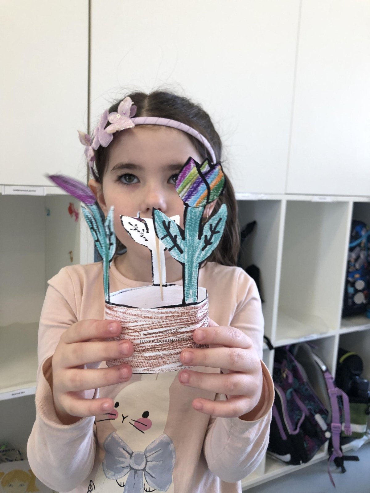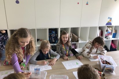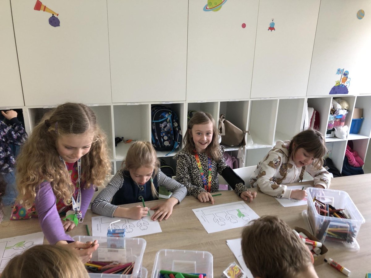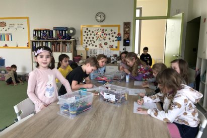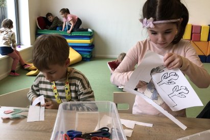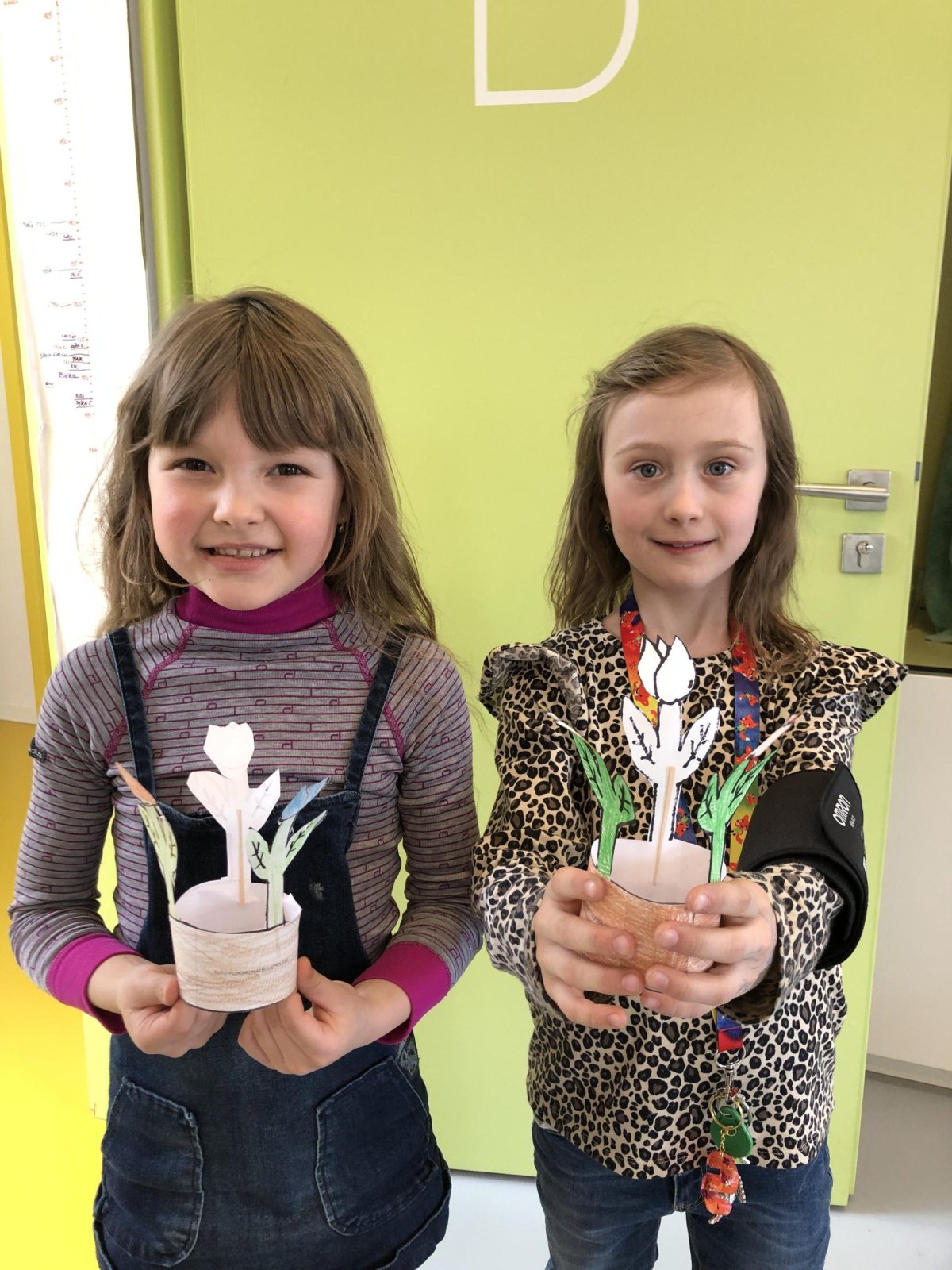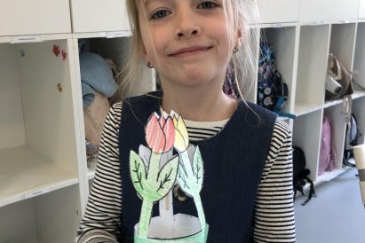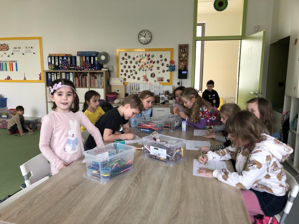 Dnes jsme si vyrobili tulipánový kruh, který může zdobit skleničku nebo okno. Děti dostaly předlohu, podle které vybarvily tulipánky, pak je podlepily a pečlivě stočily do kruhu. Každý kruh byl originální a krásně barevný. Jako včera, i dnes svítilo sluníčko, a tak jsme vyběhli ven, kde jsme si užili spoustu her a zůstali tam až do konce dne. Bylo krásné sledovat, jak děti tvořily a zároveň si užívaly slunečné počasí.