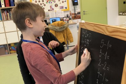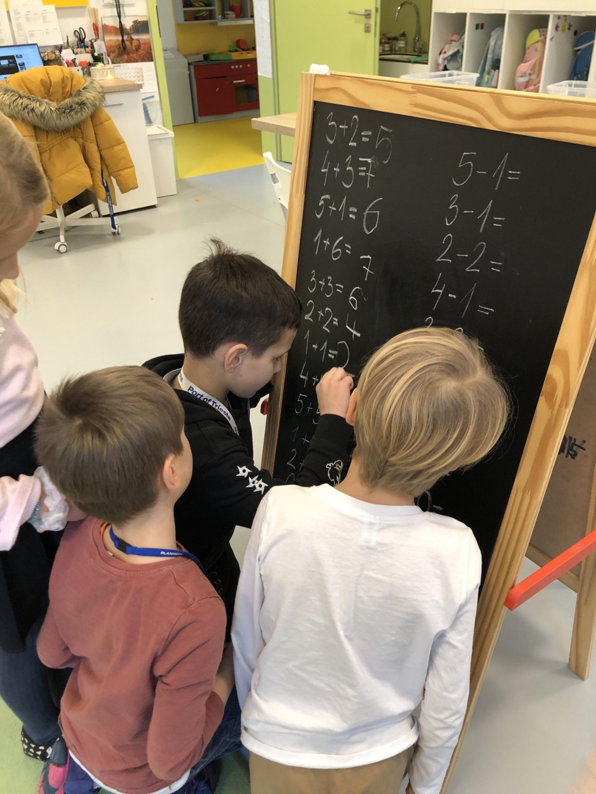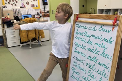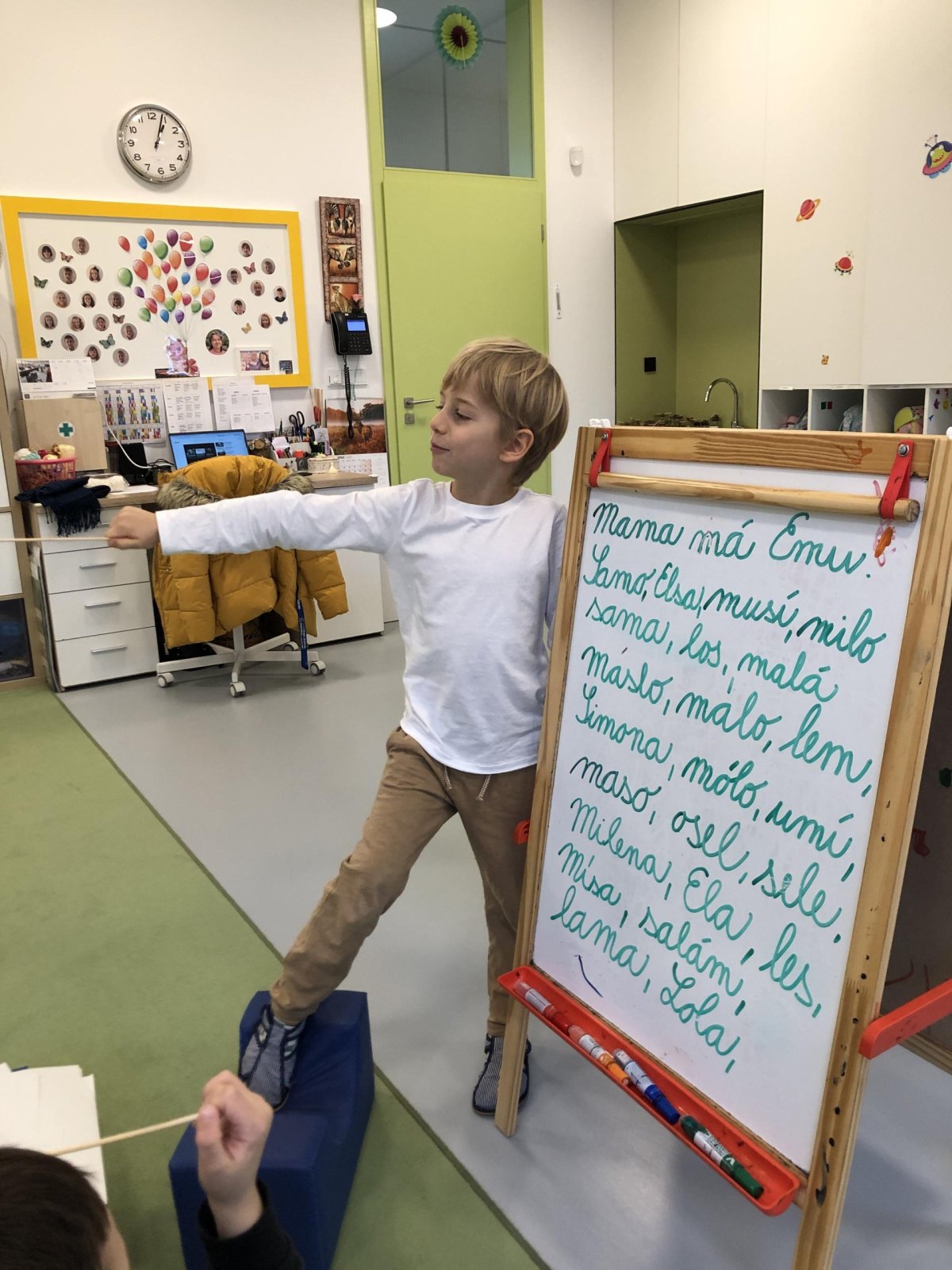 Dnes jsme se stali učiteli. Vybrali jsme několik dětí, které si vyzkoušely roli učitele a připravily hodinu pro své spolužáky. Měli jsme hodiny češtiny, matematiky, výtvarky, tělocviku i hudebky.