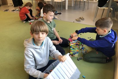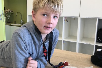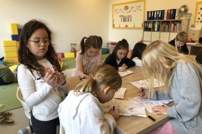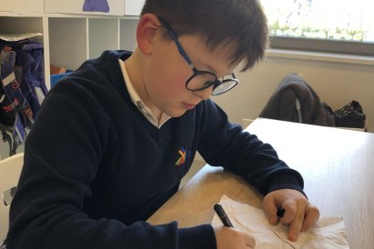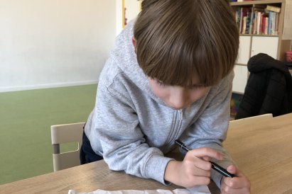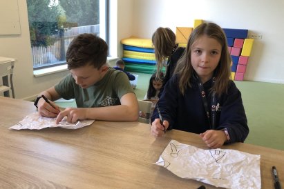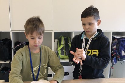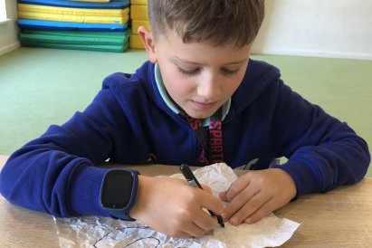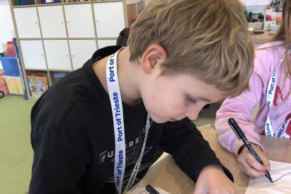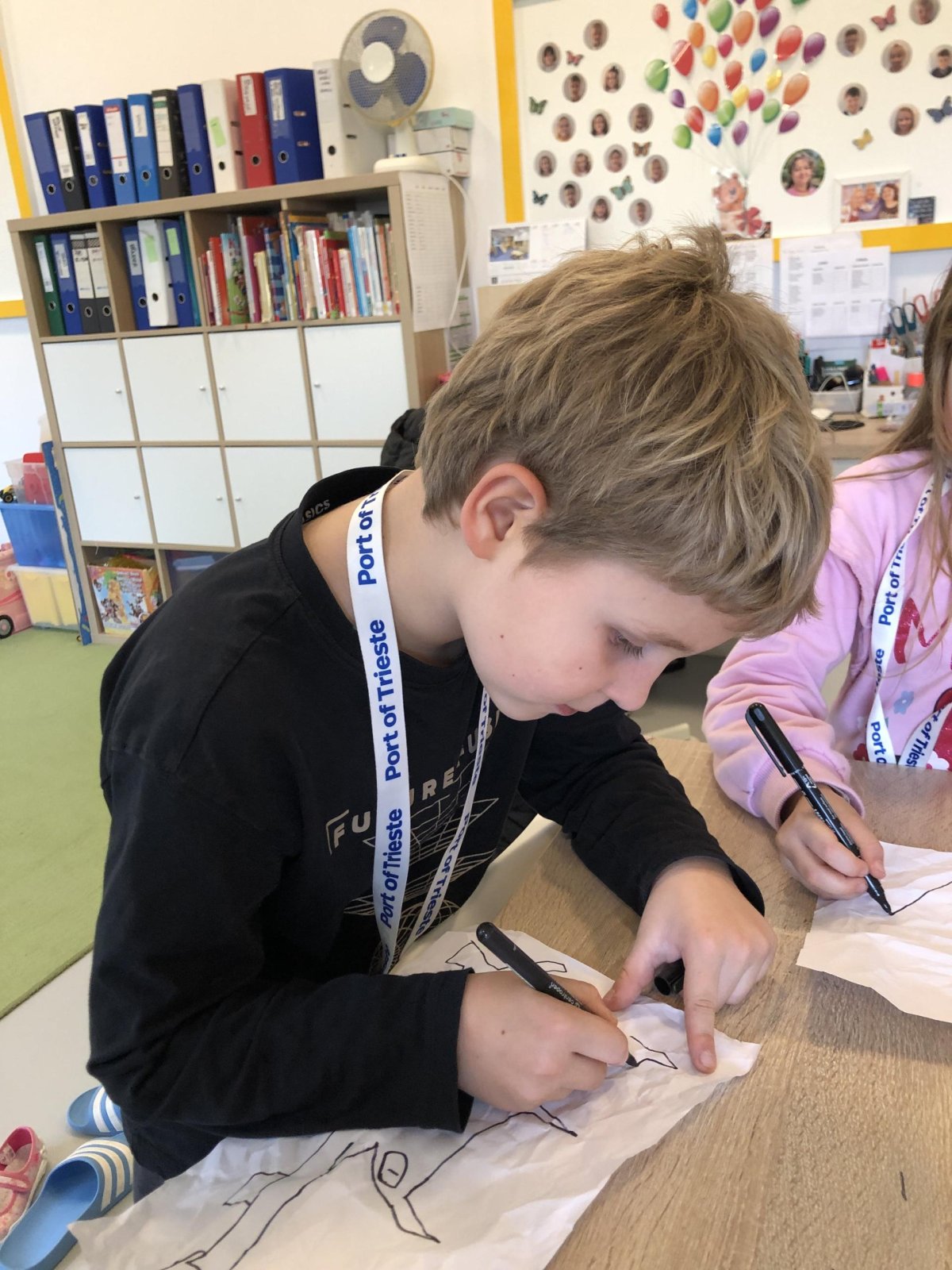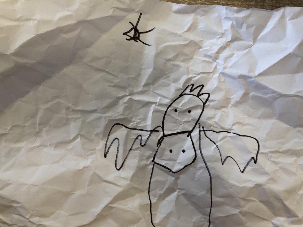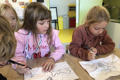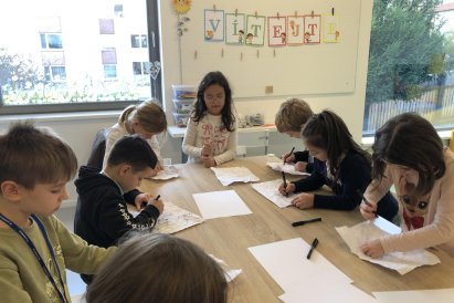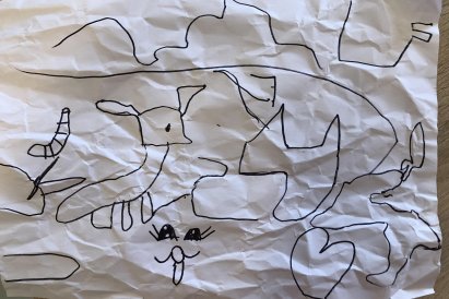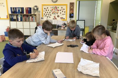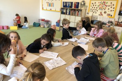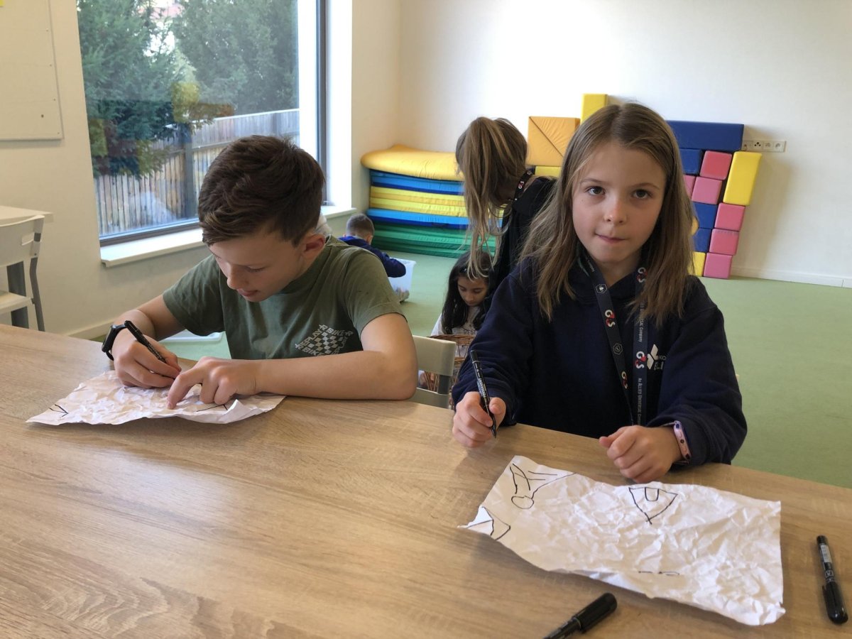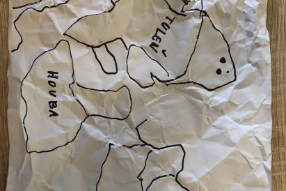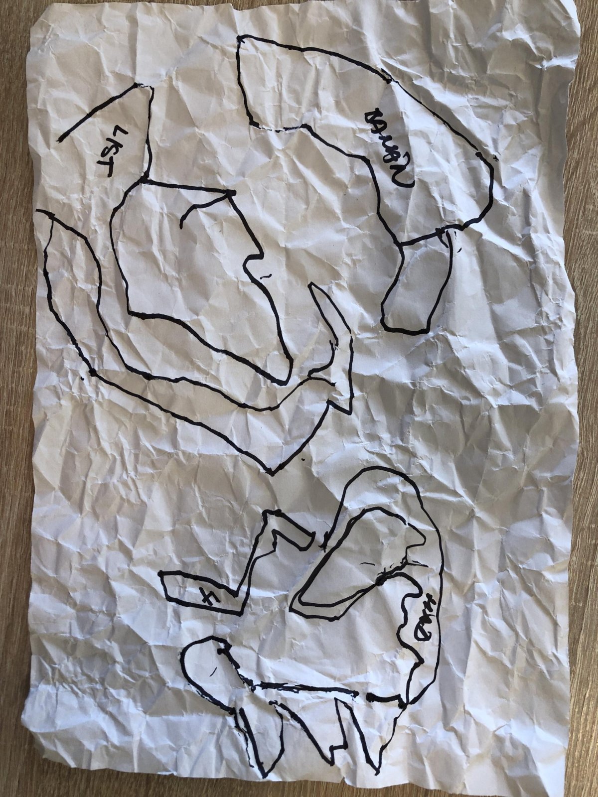 Každé dítě dostalo velký arch papíru, který nejdřív pořádně pomačkalo – a pak ho zase rozložilo. Do ruky dostaly fixu a jejich úkolem bylo pozorně se zadívat na všechny ty záhyby a čáry, které na papíře vznikly.