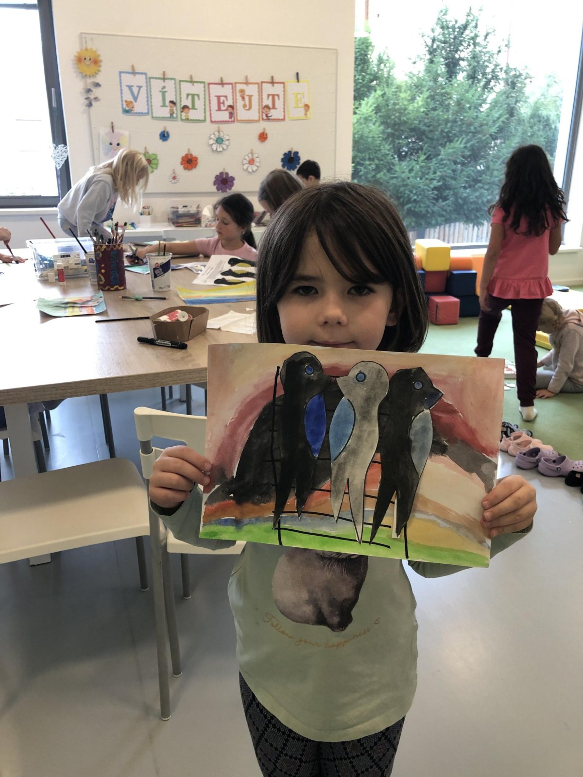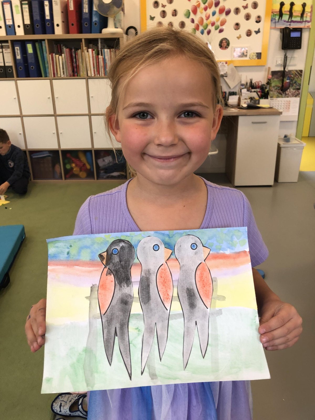 Když léto pomalu ustupuje a dny se zkracují, nepozorovaně se začíná odehrávat fascinující přírodní jev – podzimní odlet vlaštovek. Tyto drobné ptáky, s typickým vidlicovitým ocasem a elegantním letem, spojuje s podzimem především jejich každoroční migrace do teplejších krajin. Pro mnohé z nás jsou vlaštovky symbolem konce léta. Jejich poslední přelet nad vesnicí nebo městem je tichým znamením, že podzim je tady. V některých regionech lidé sledují jejich pohyb a snaží se předpovědět počasí – dřívější odlet může signalizovat brzký příchod chladného počasí. My jsme si dnes takové vlaštovky zobrazili na papír a u toho jsme si zpívali písničky, které máme rádi. A jak to dopadlo? Podívejte se sami.