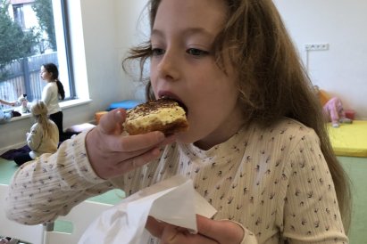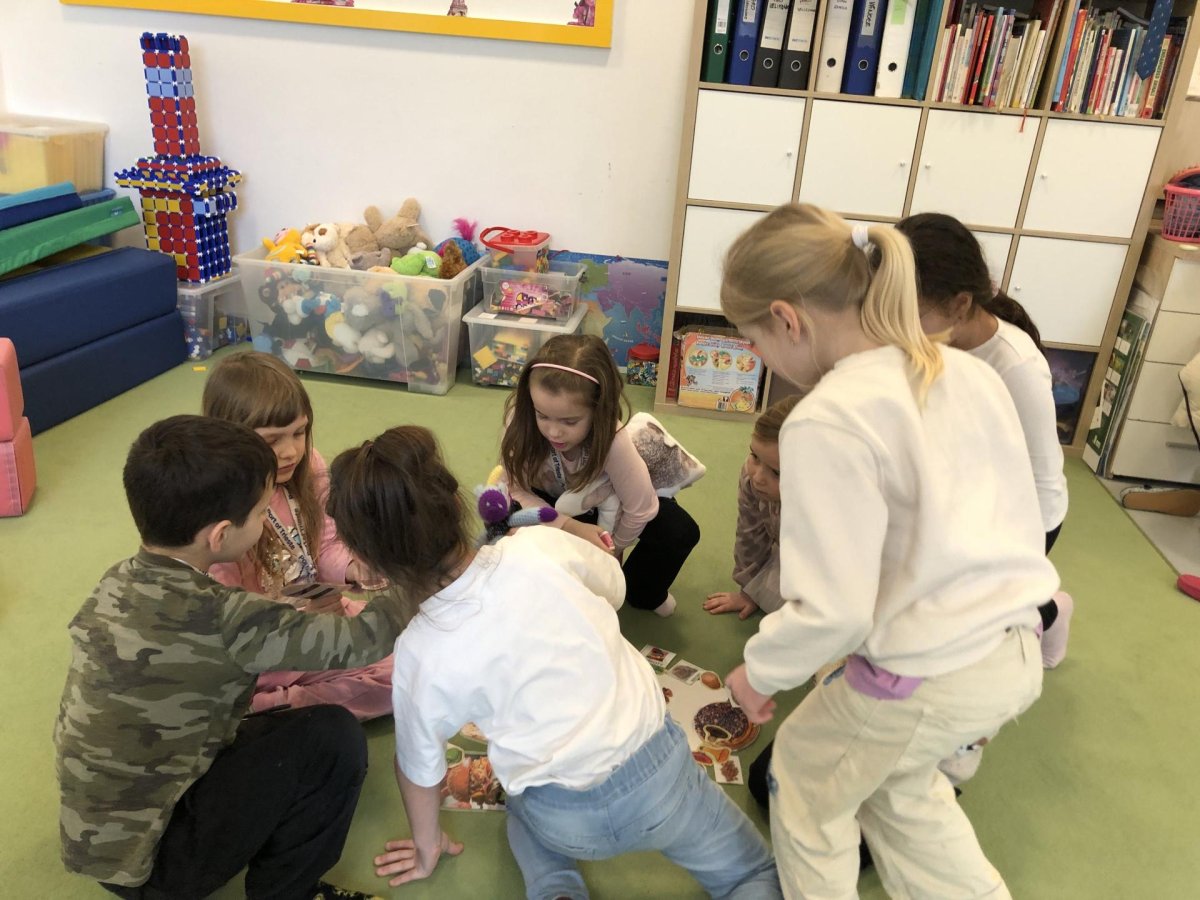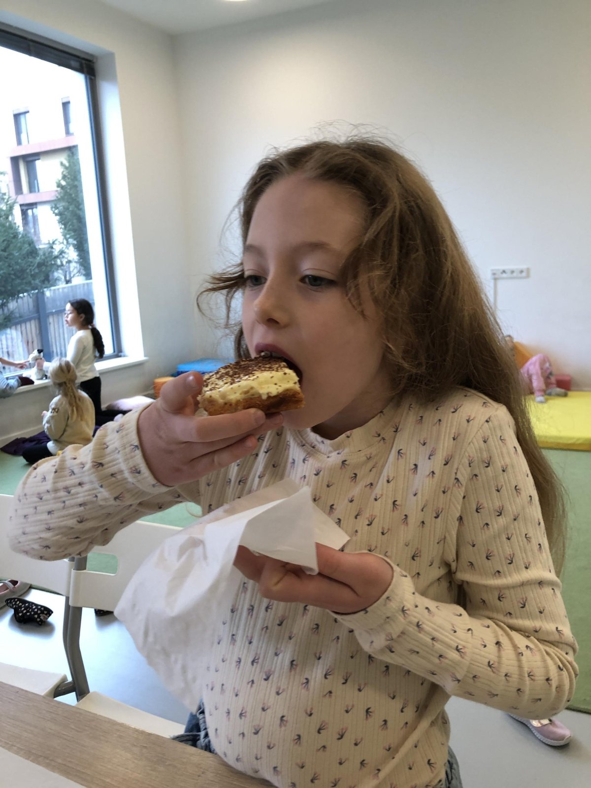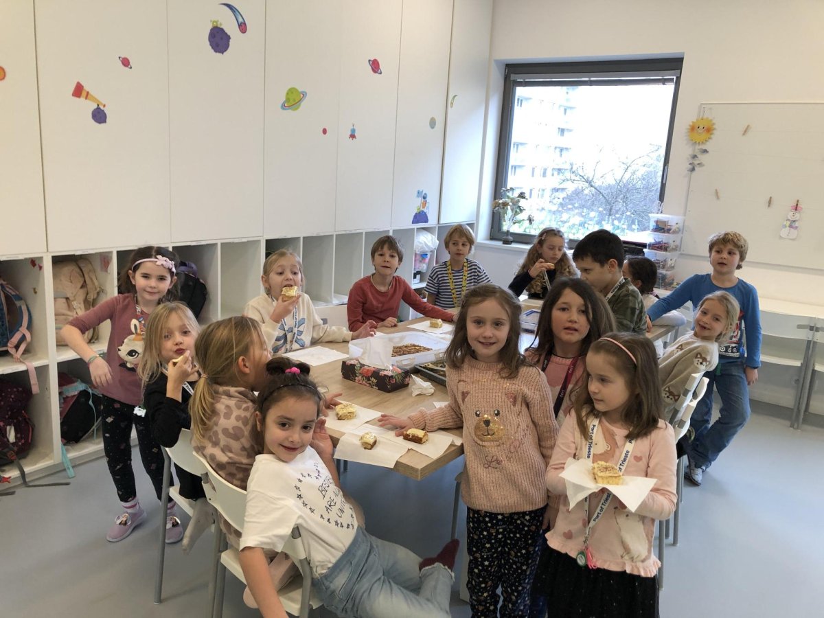 A protože naše Sárinka z první třídy dnes slavila narozeniny, přinesla s sebou něco dobrého pod zub. Nakrájeli jsme koláče, popřáli jí všechno nejlepší a s chutí si pochutnali – den jsme tak zakončili sladce a vesele.