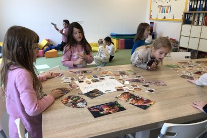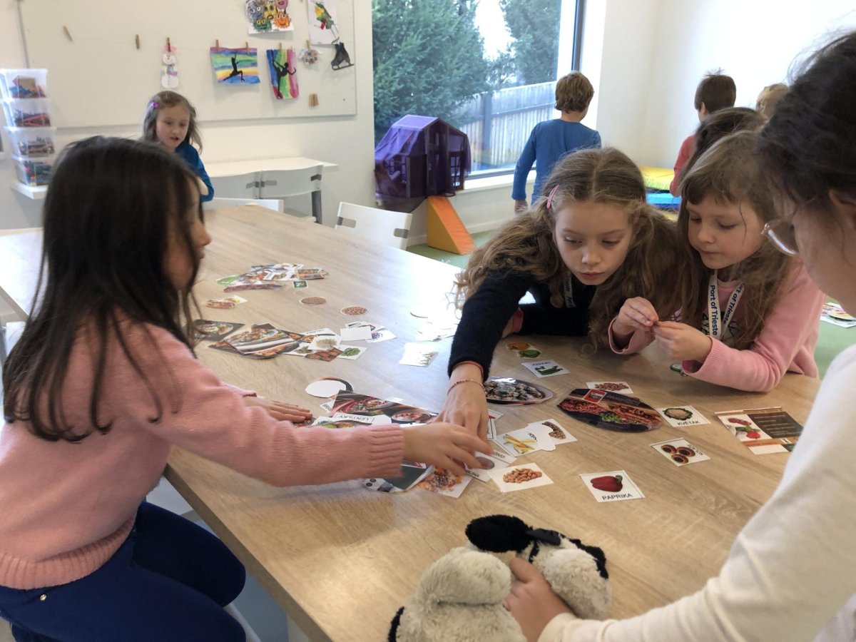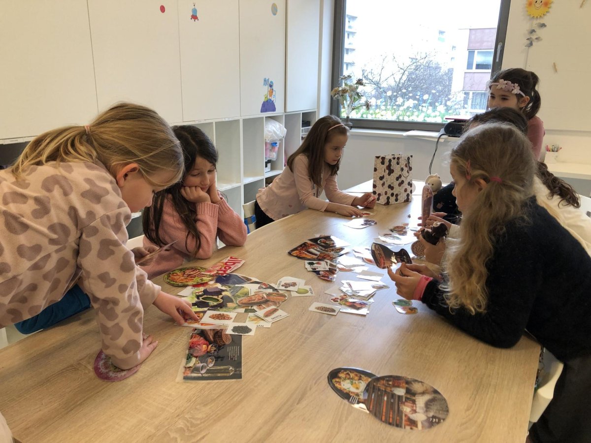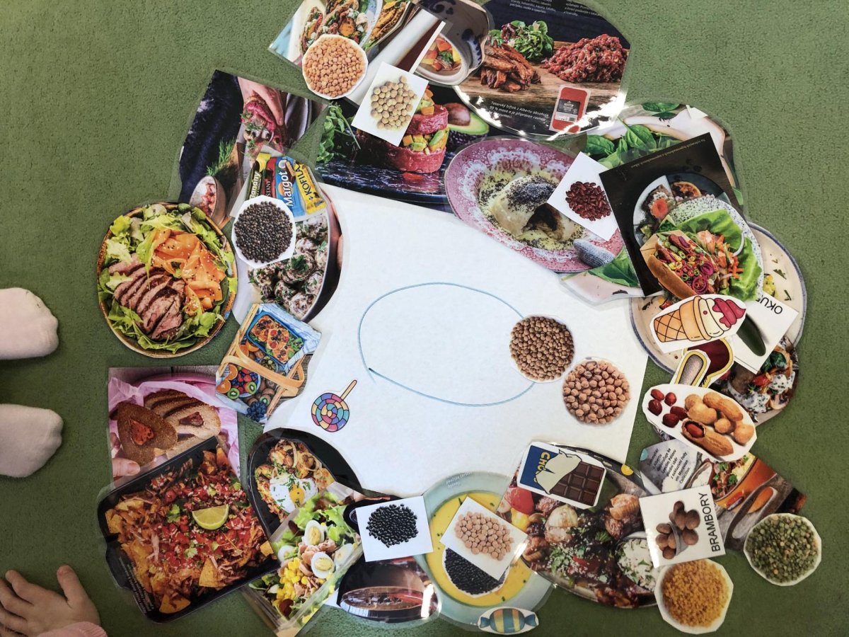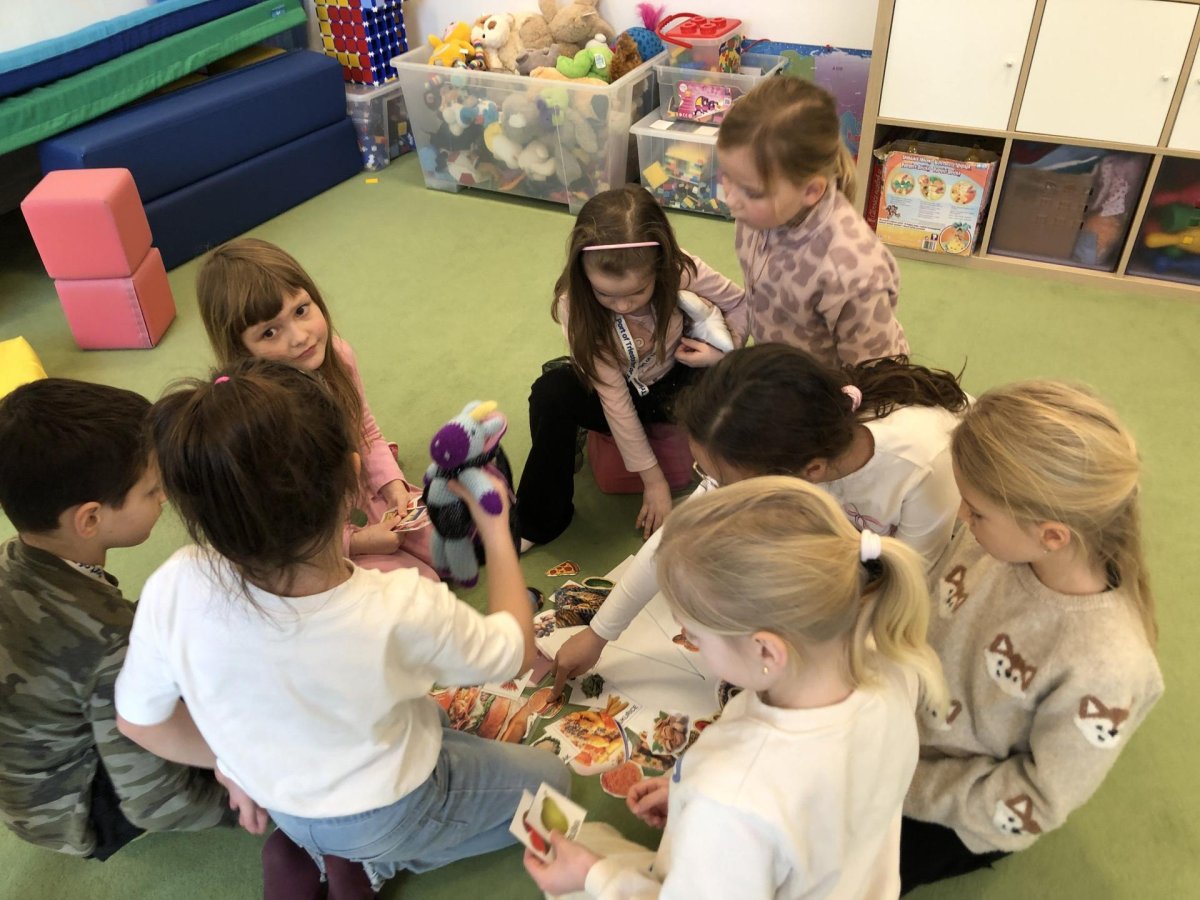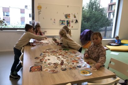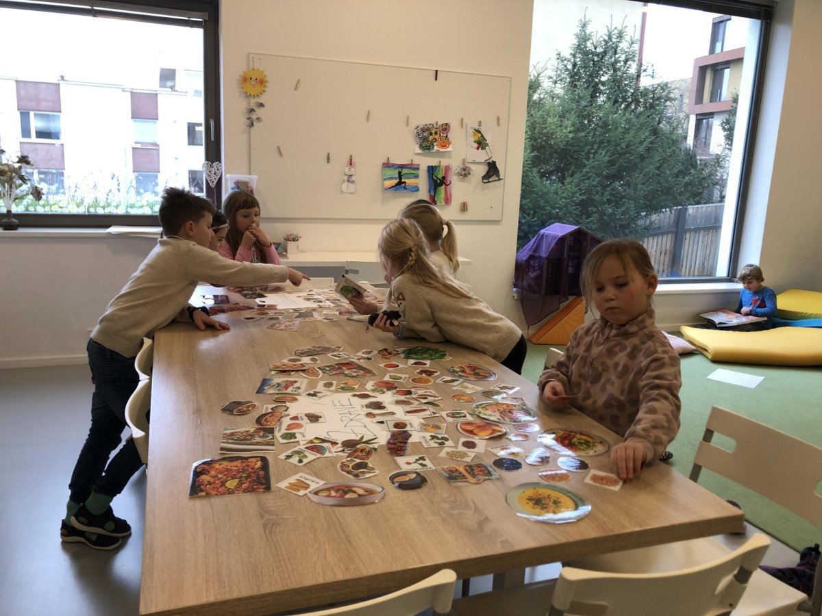 Dnes jsme se vydali na malou cestu do světa zdravého jídla a poznávali jsme, co všechno patří do zdravé pyramidy. Na stole jsme měli připravené kartičky s různými potravinami a děti měly za úkol roztřídit je podle toho, co jíme na snídani, oběd a večeři. S velkou chutí se pustily do práce a pečlivě kartičky třídily.