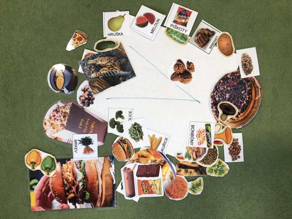 Pak jsme si vytvořili druhou skupinu – zdravé a nezdravé potraviny – a znovu jsme kartičky roztřídili podle toho, co našemu tělu prospívá a co bychom měli jíst jen občas. Nakonec jsme si povídali o tom, co doma nejraději snídáme, obědváme a večeříme, a zjistili jsme, že každý má své oblíbené zdravé i méně zdravé pochoutky.