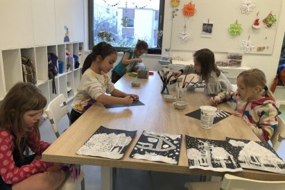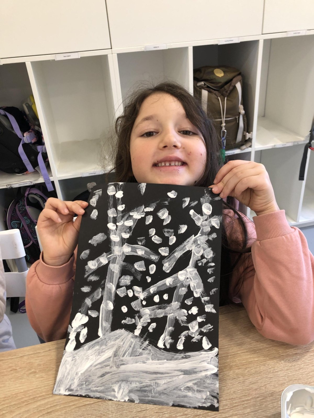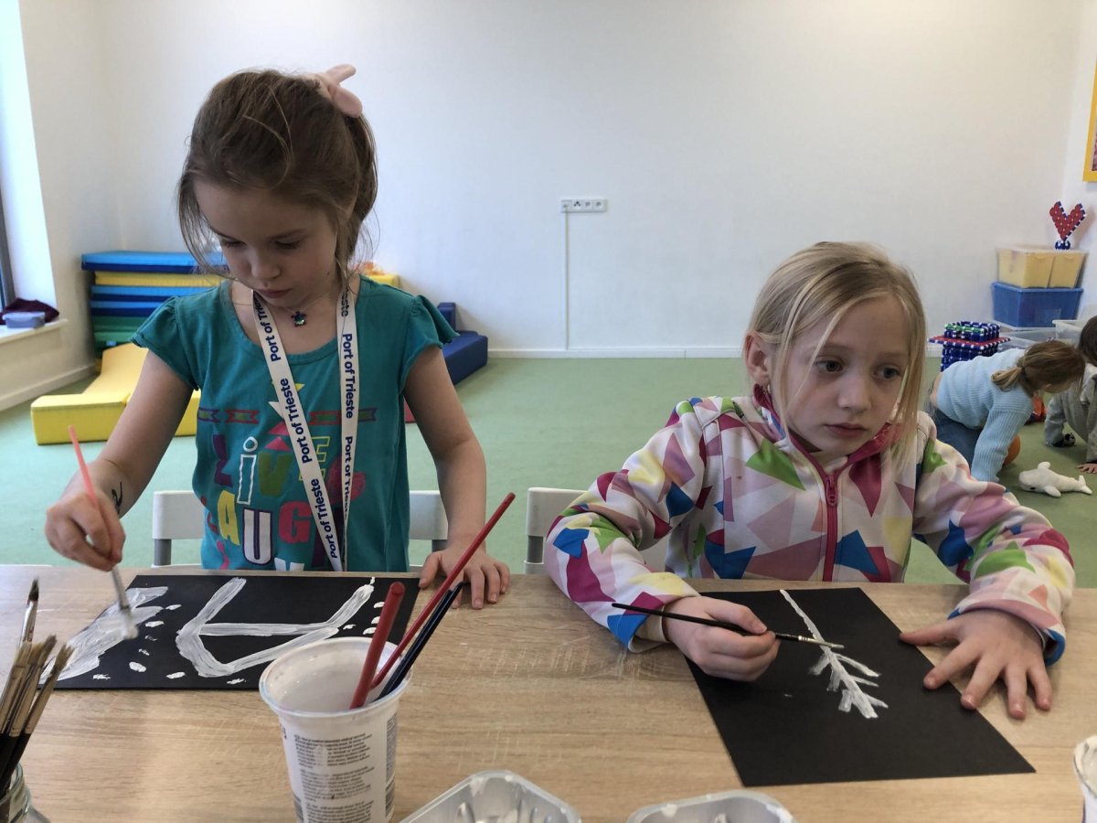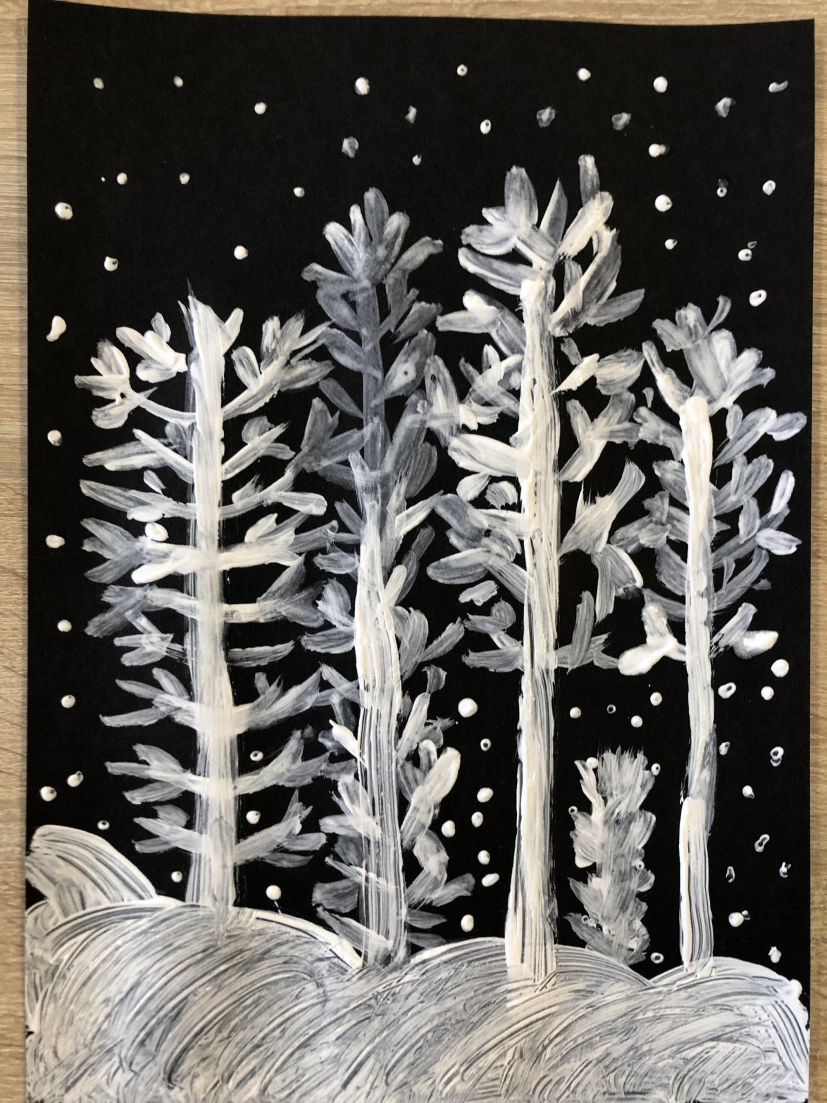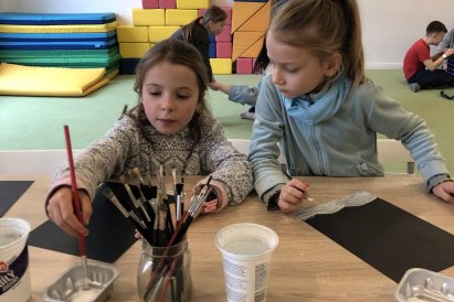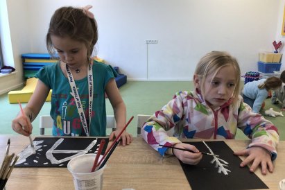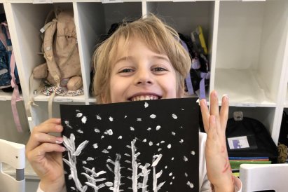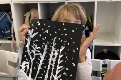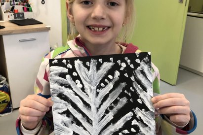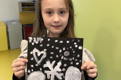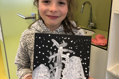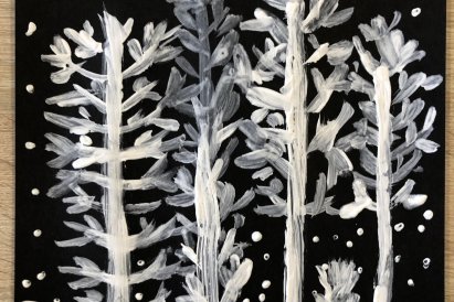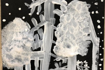 Zimní krajina je tichá a klidná. Sníh pokrývá stromy a pole bílou peřinou. Vzduch je chladný a svěží a obloha má často jemné pastelové barvy. Když jsme dnes malovali štětcem a barvou, snažili jsme se zachytit tu krásu zimního světa a třpytící se sníh, který se třpytí na slunci. Venku se nám už sníh roztopil, tak jsme šli ven a sbírali jsme poslení kousky, které tam zůstali.
