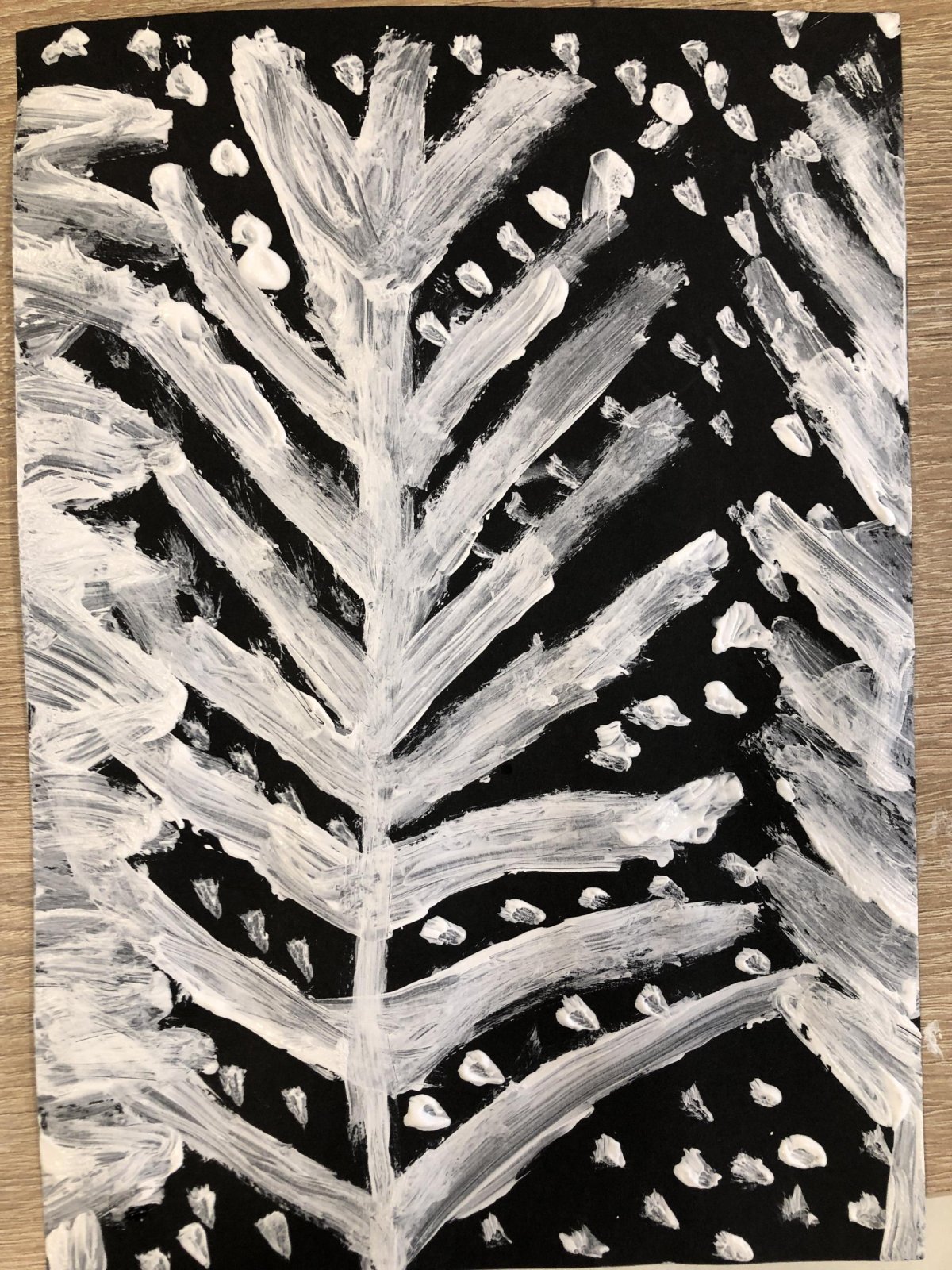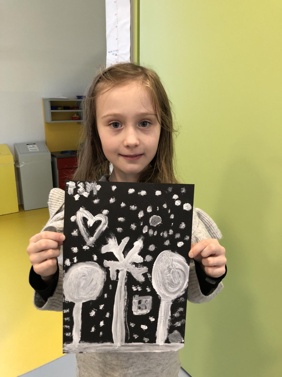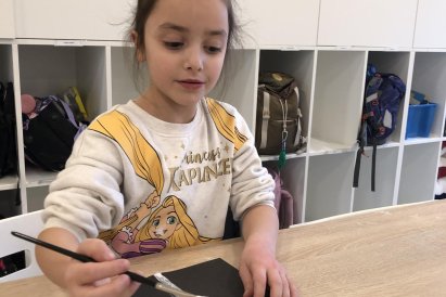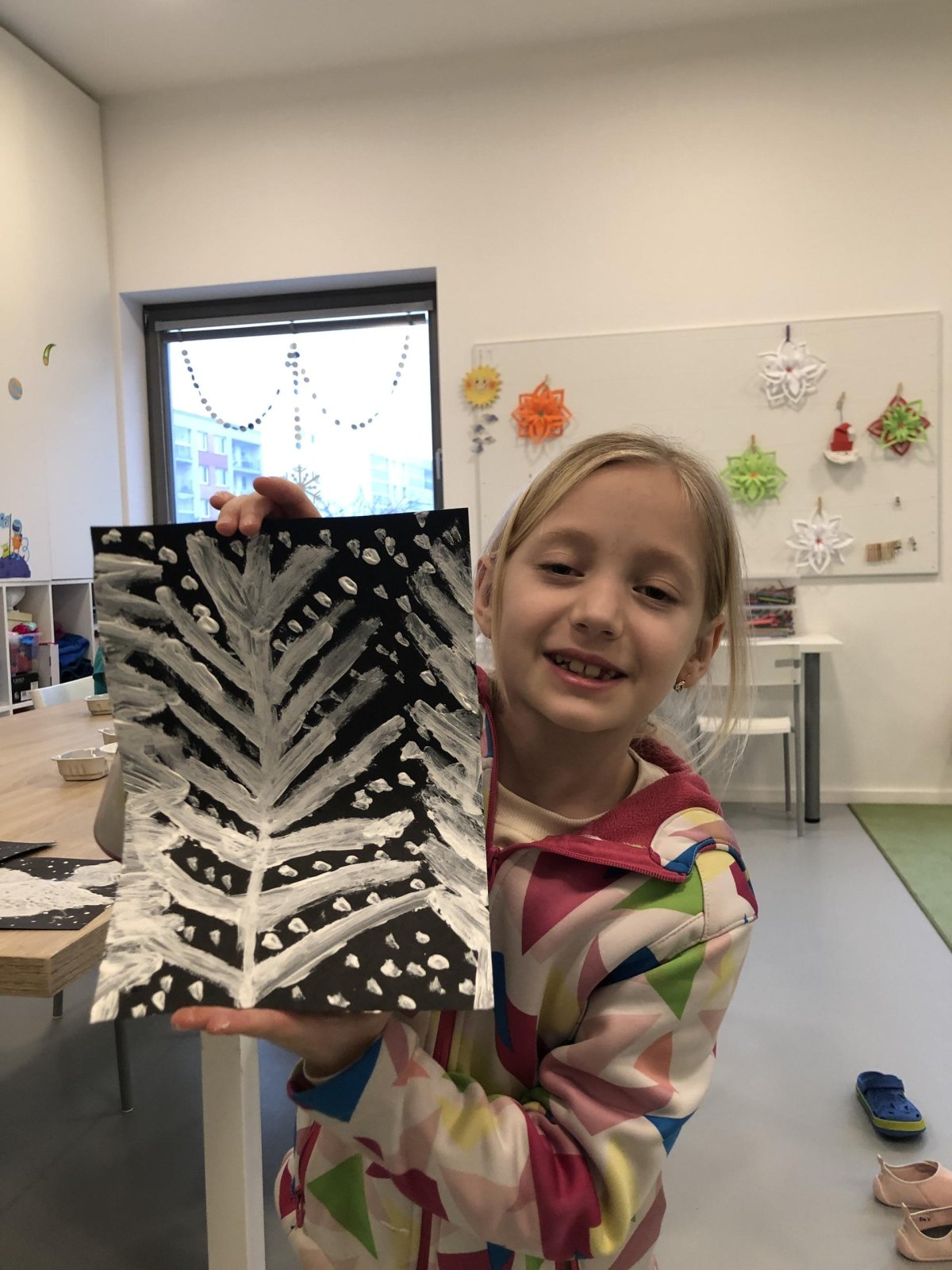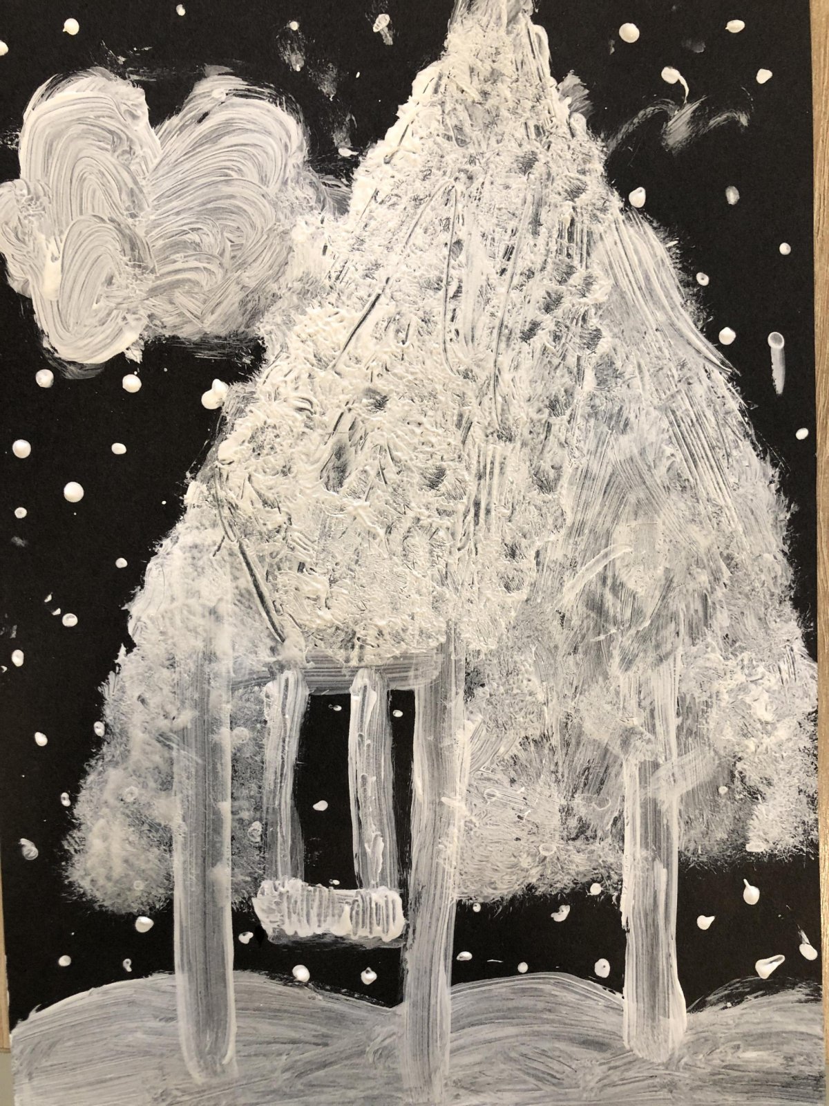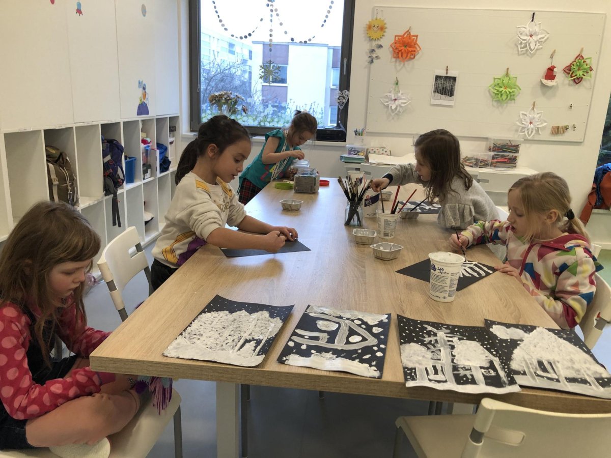 Zimní krajina je tichá a klidná. Sníh pokrývá stromy a pole bílou peřinou. Vzduch je chladný a svěží a obloha má často jemné pastelové barvy. Když jsme dnes malovali štětcem a barvou, snažili jsme se zachytit tu krásu zimního světa a třpytící se sníh, který se třpytí na slunci. Venku se nám už sníh roztopil, tak jsme šli ven a sbírali jsme poslení kousky, které tam zůstali.