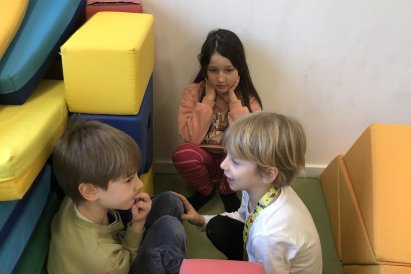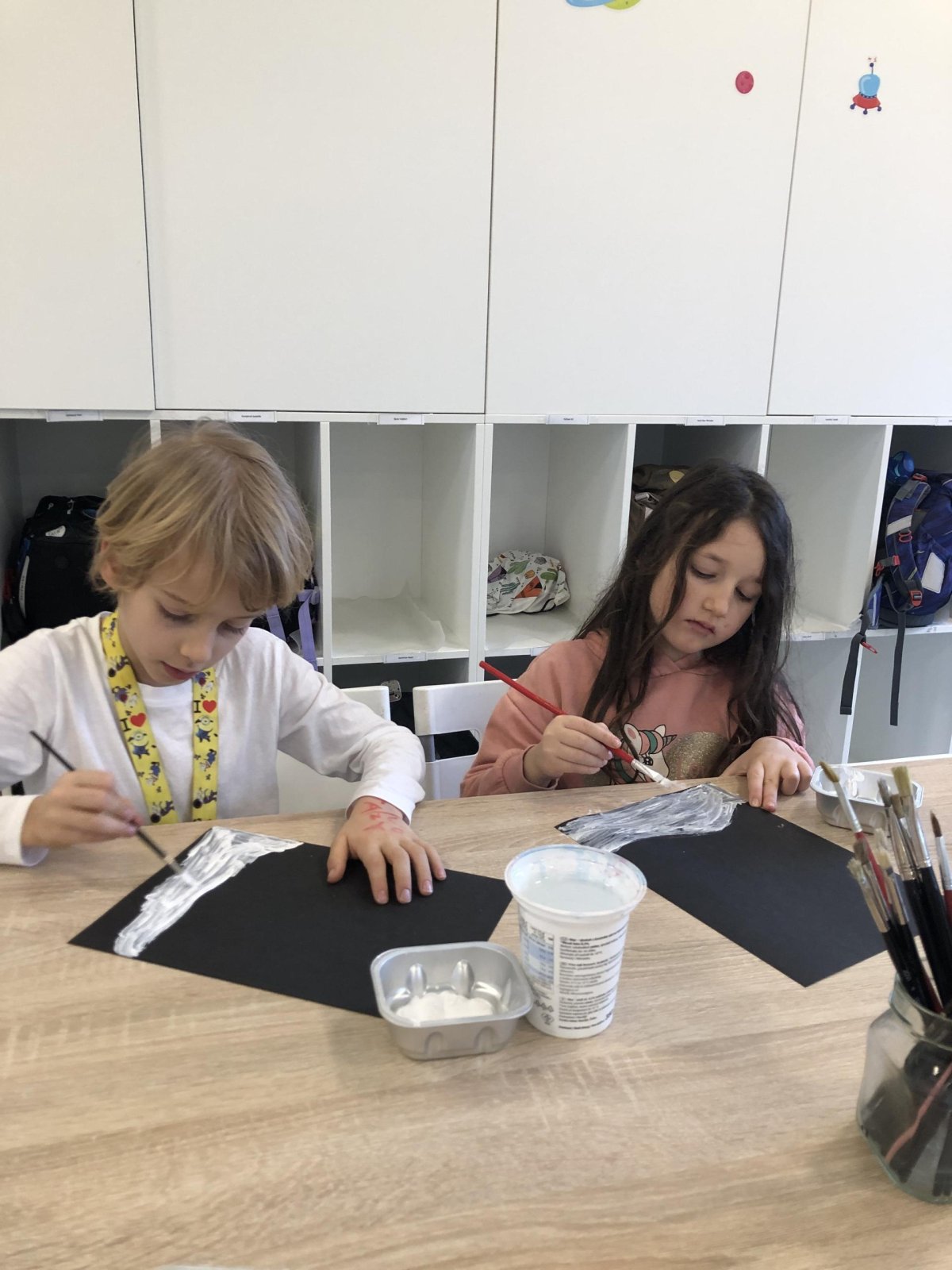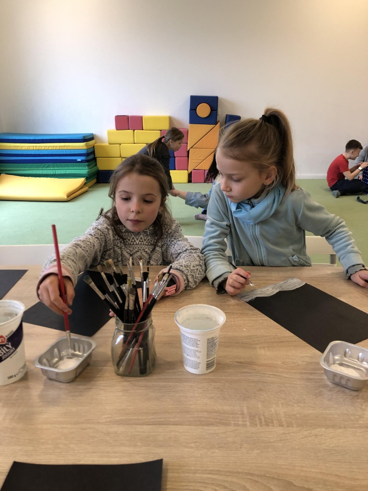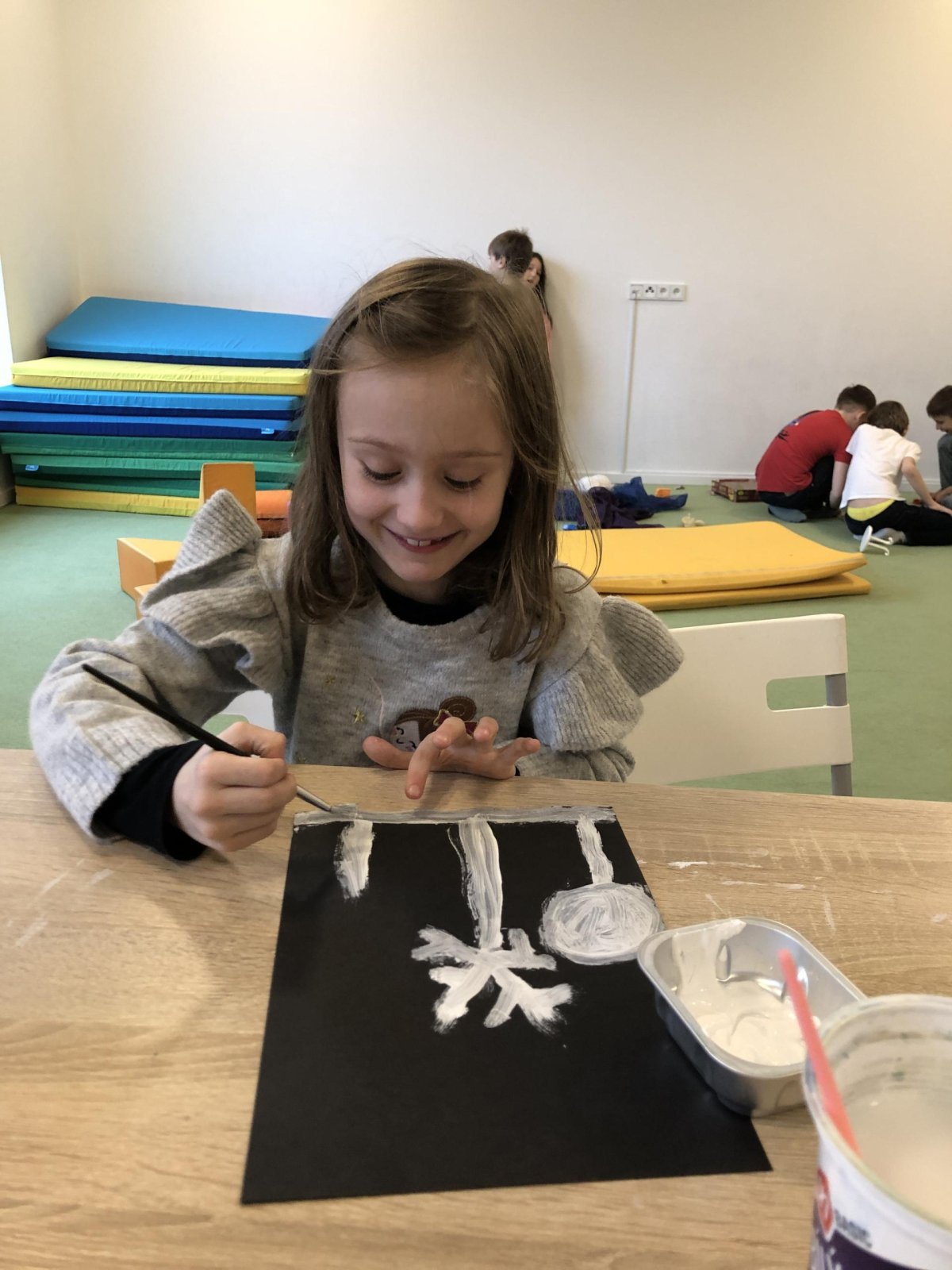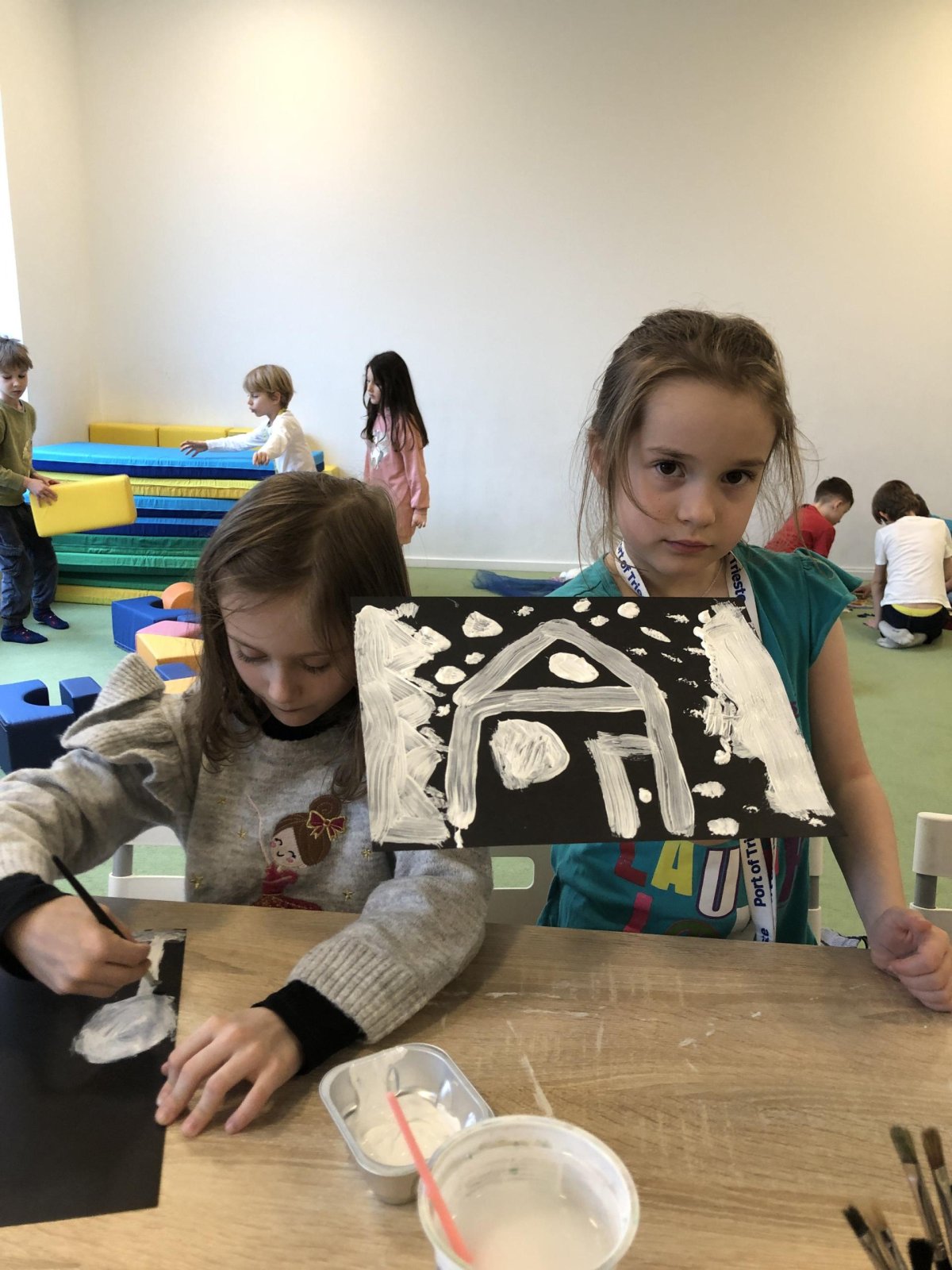Zimní krajina je tichá a klidná. Sníh pokrývá stromy a pole bílou peřinou. Vzduch je chladný a svěží a obloha má často jemné pastelové barvy. Když jsme dnes malovali štětcem a barvou, snažili jsme se zachytit tu krásu zimního světa a třpytící se sníh, který se třpytí na slunci. Venku se nám už sníh roztopil, tak jsme šli ven a sbírali jsme poslení kousky, které tam zůstali.