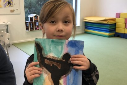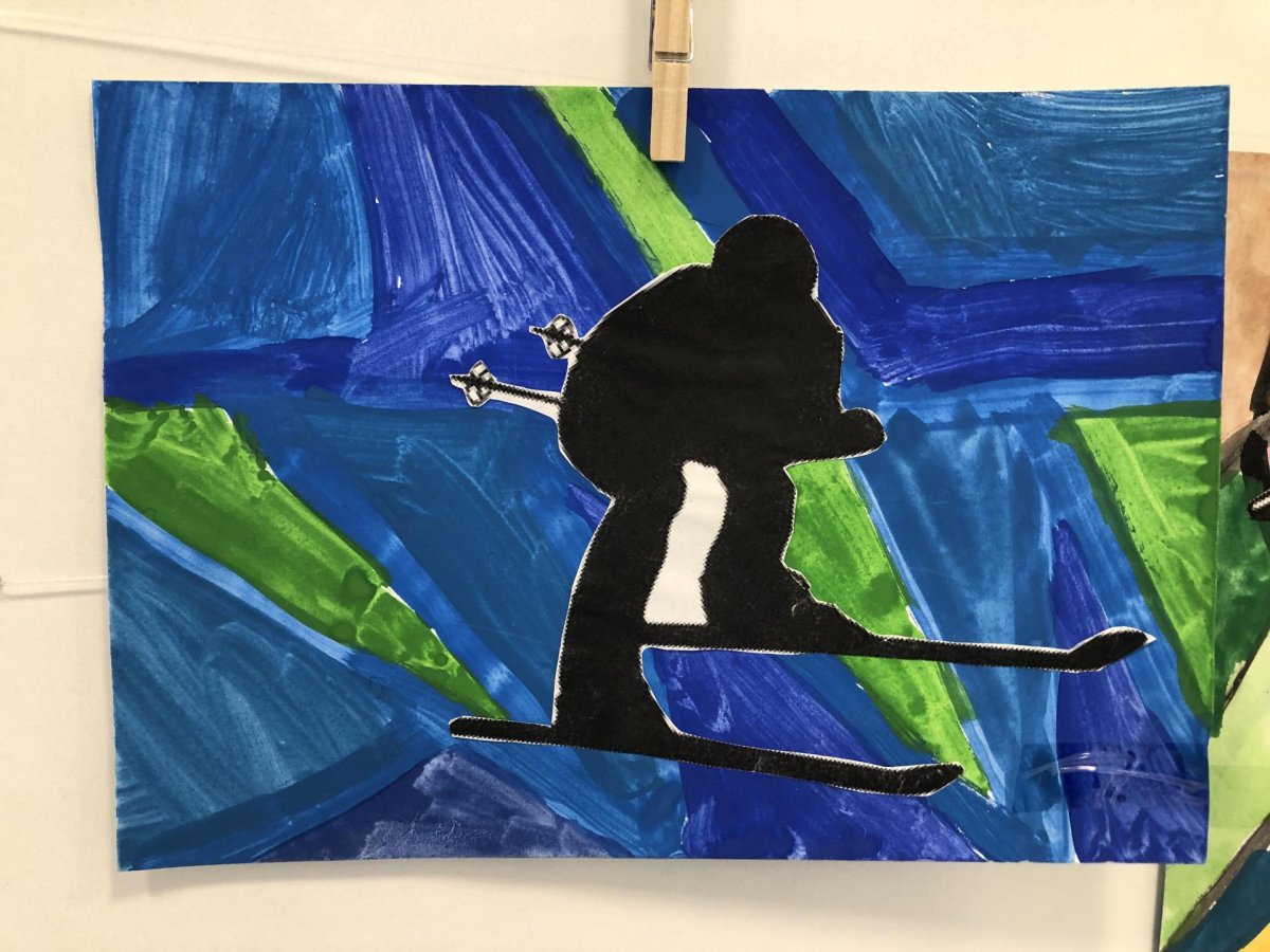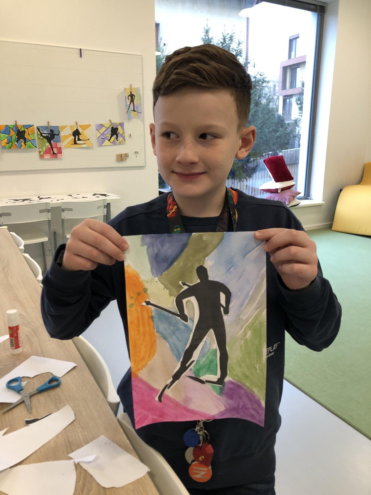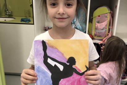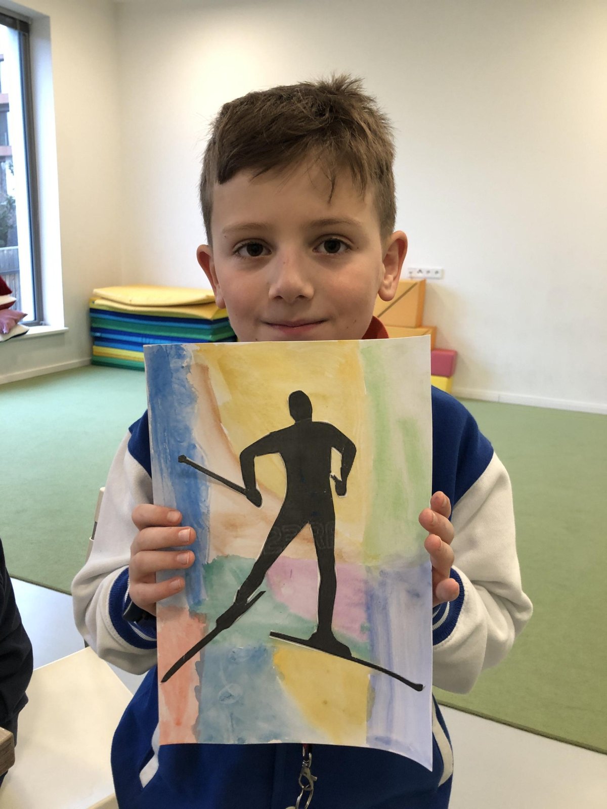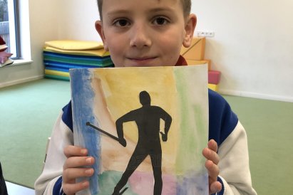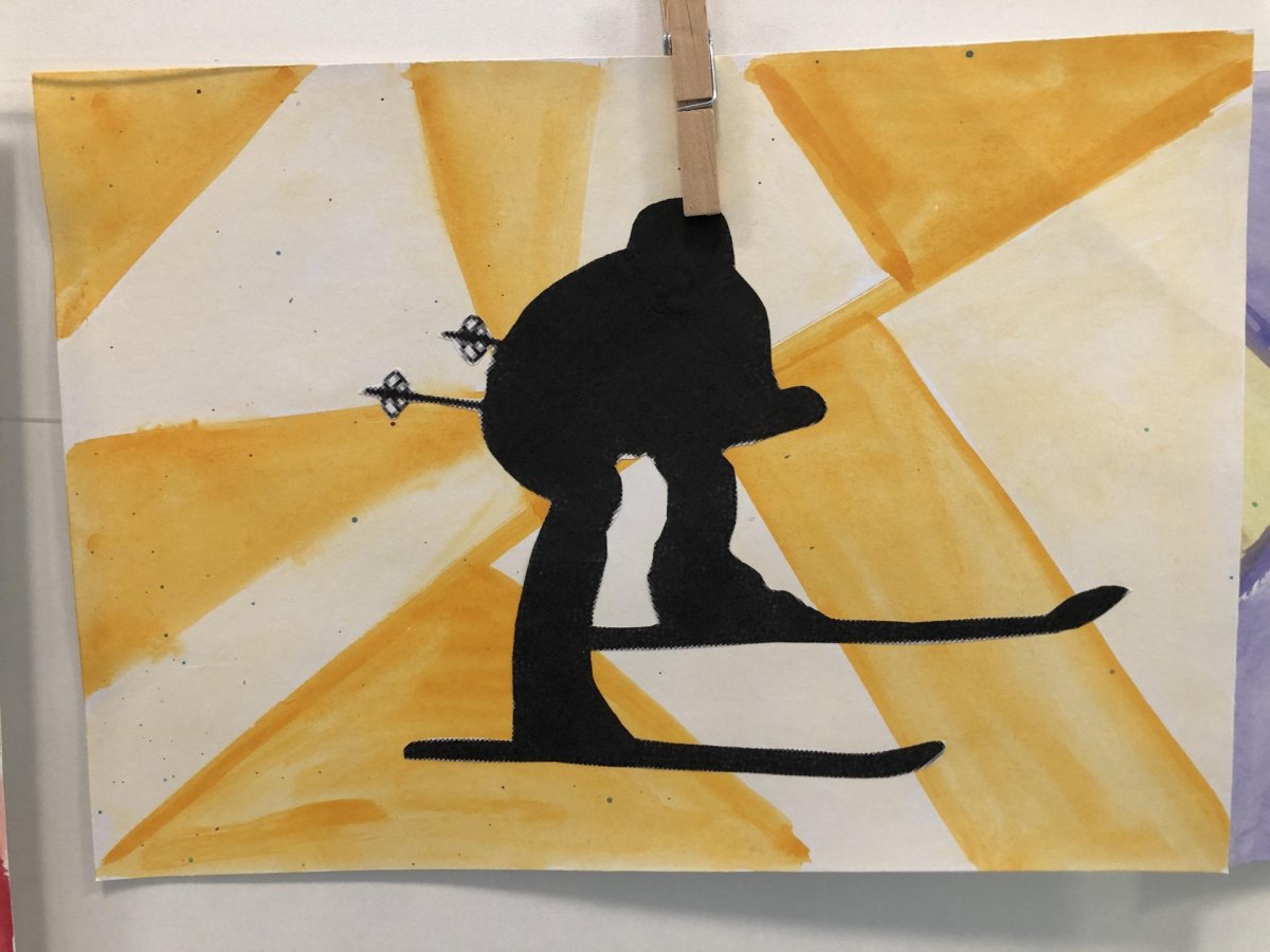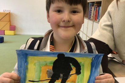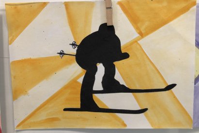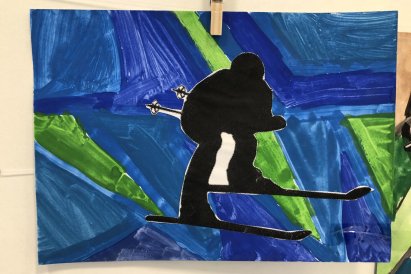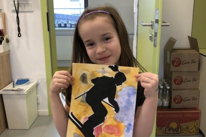 Poté jsme se pustili do výtvarné práce. Děti si nejprve namalovaly barevný podklad a následně na něj nalepily sportovce provozujícího zimní sport. Vznikly tak velmi krásné a nápadité obrázky, které se dětem opravdu povedly. Každý obrázek byl originální a plný barev.