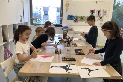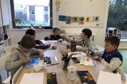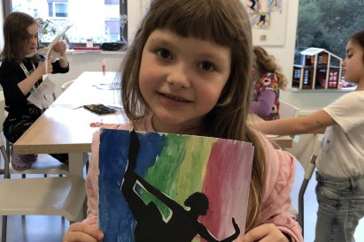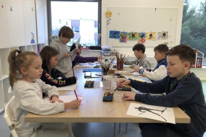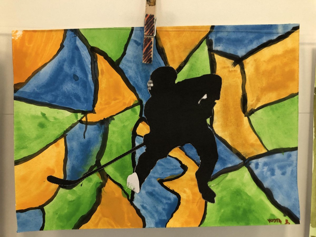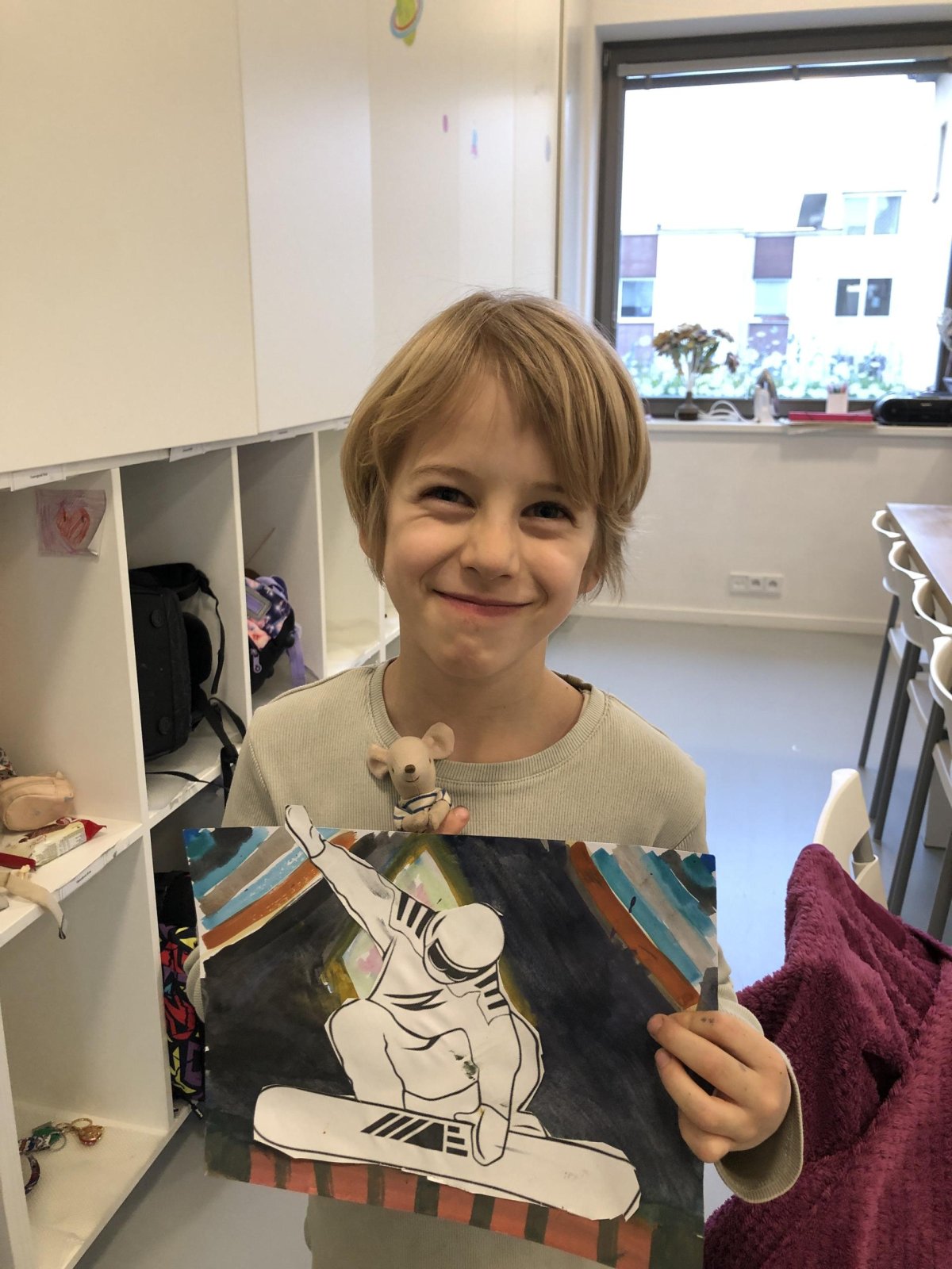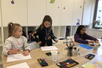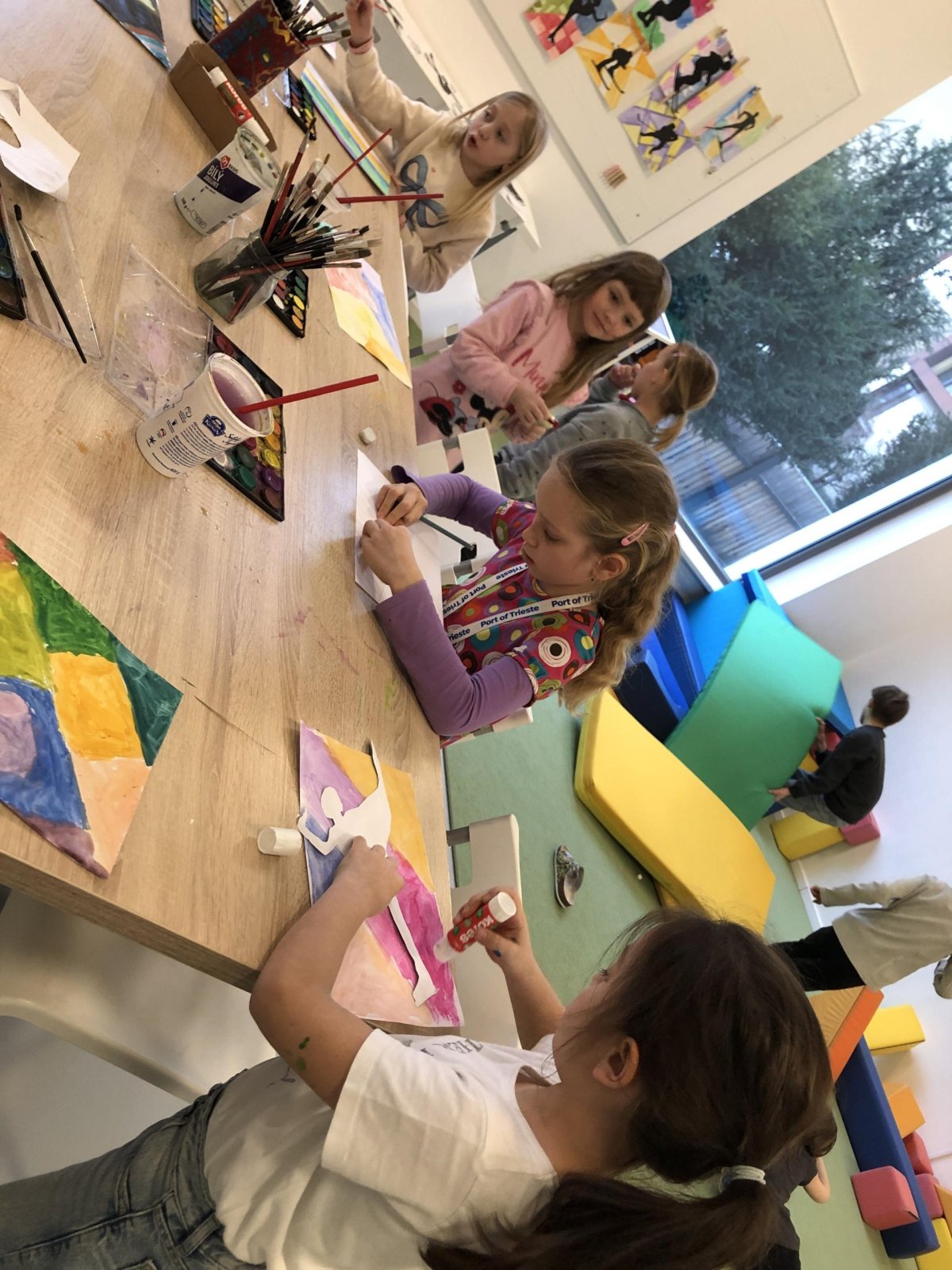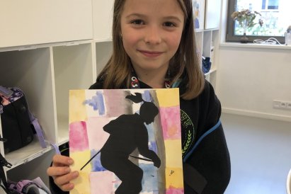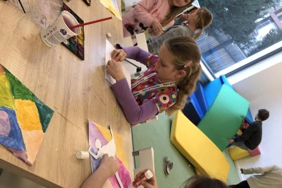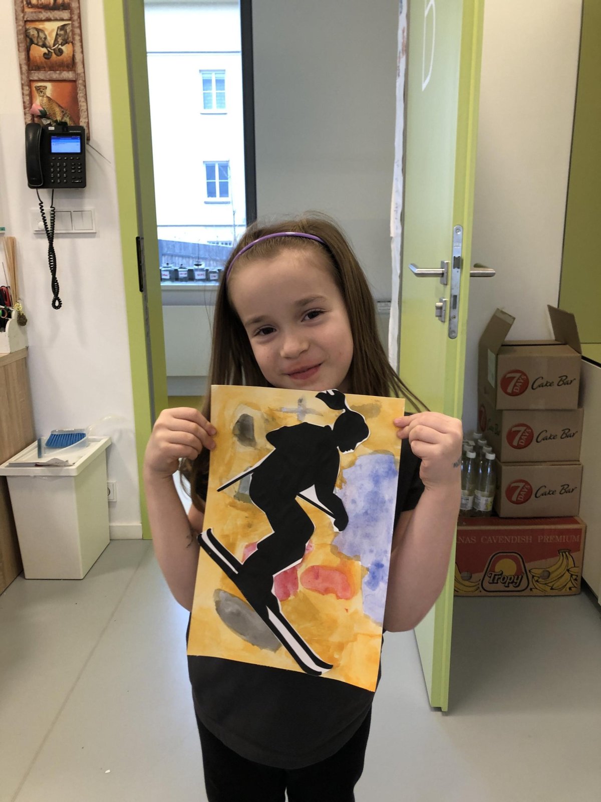 Poté jsme se pustili do výtvarné práce. Děti si nejprve namalovaly barevný podklad a následně na něj nalepily sportovce provozujícího zimní sport. Vznikly tak velmi krásné a nápadité obrázky, které se dětem opravdu povedly. Každý obrázek byl originální a plný barev.
