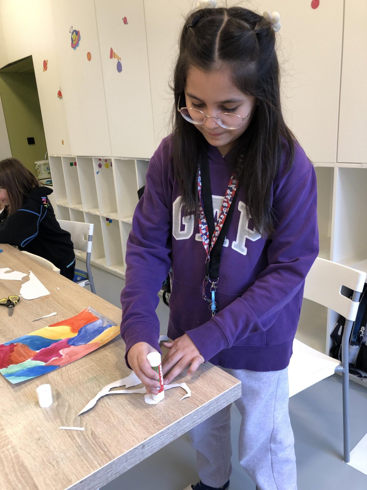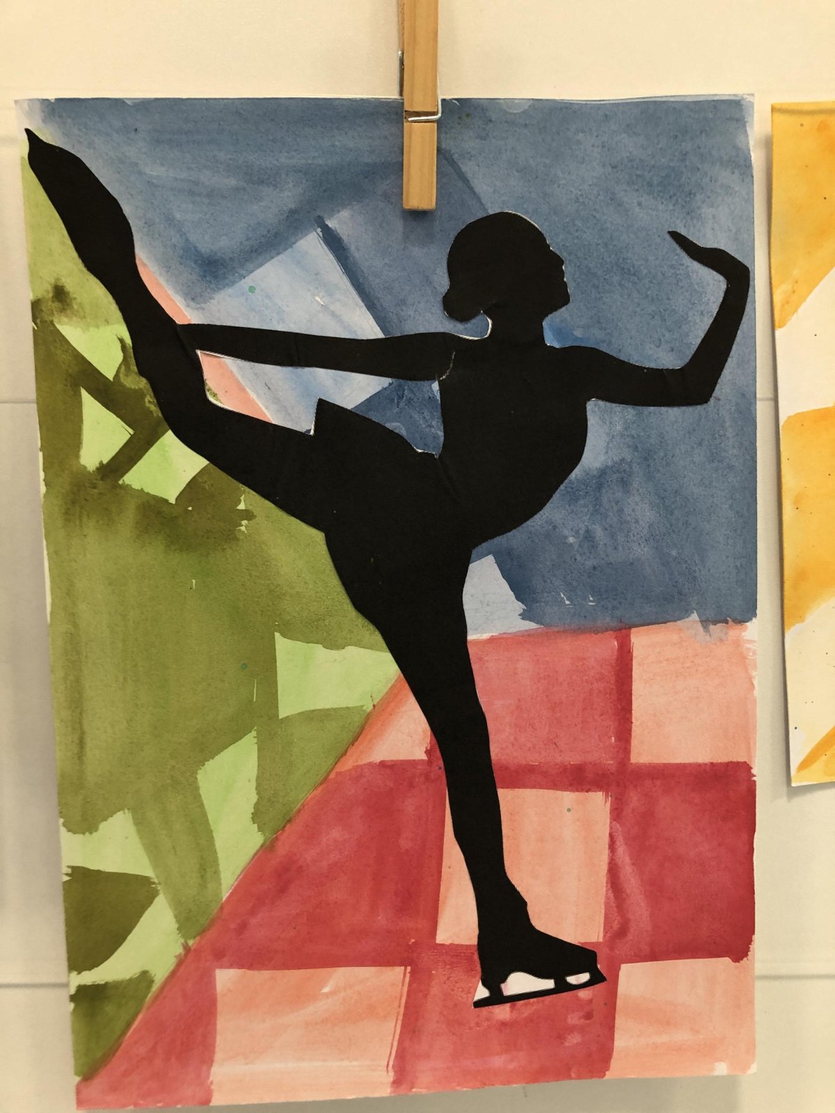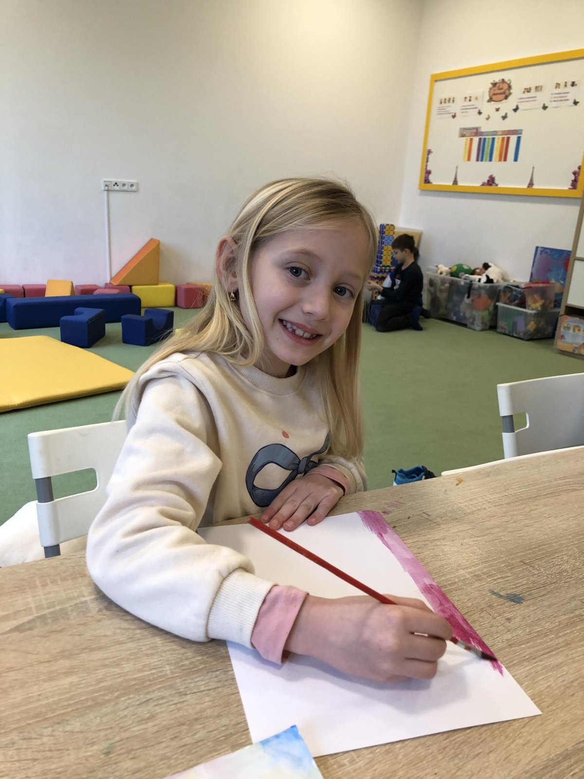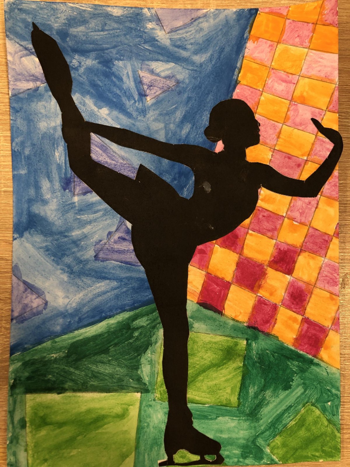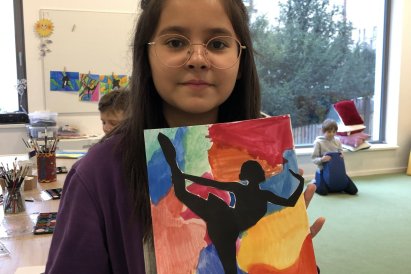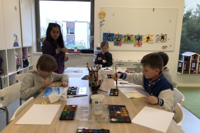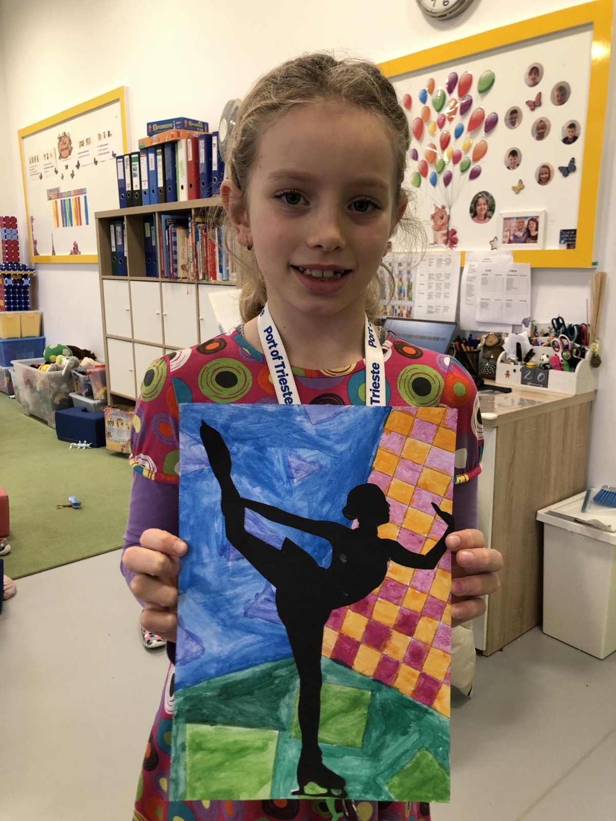 Poté jsme se pustili do výtvarné práce. Děti si nejprve namalovaly barevný podklad a následně na něj nalepily sportovce provozujícího zimní sport. Vznikly tak velmi krásné a nápadité obrázky, které se dětem opravdu povedly. Každý obrázek byl originální a plný barev.