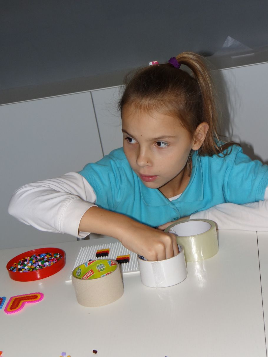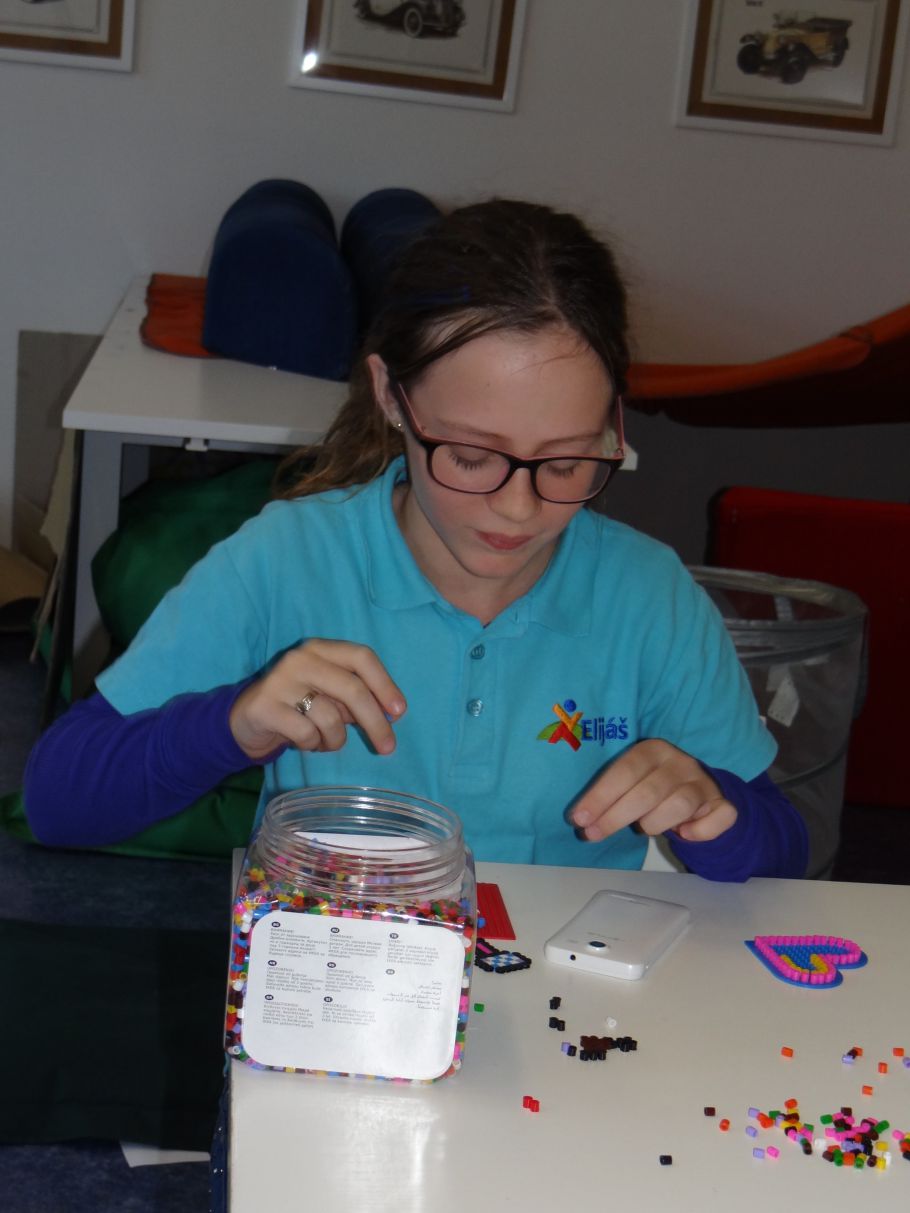 Dnes byl obyčejný, příjemný den. Korálkovali jsme, trochu boxovali, brnkali na kytaru, odpočívali v domečcích, čutali fotbal v hale a hráli Logika.