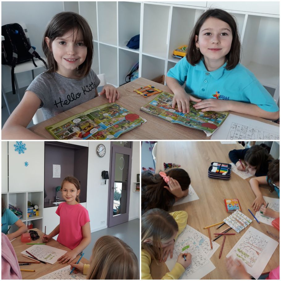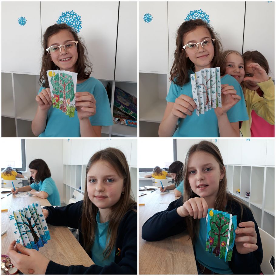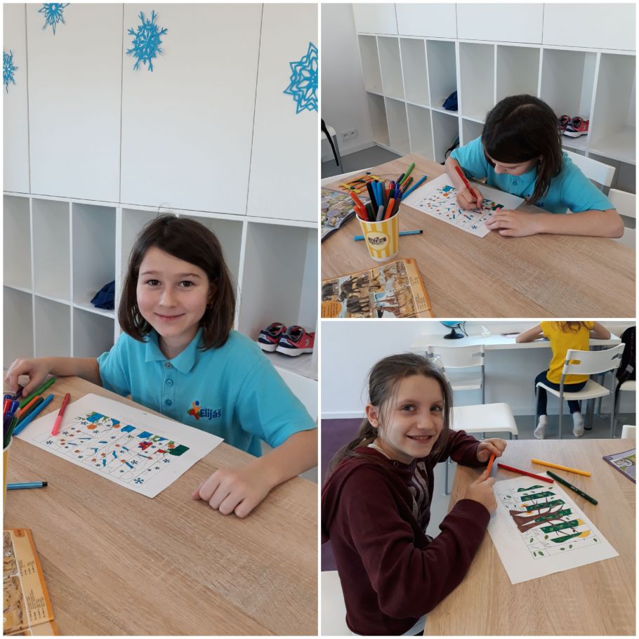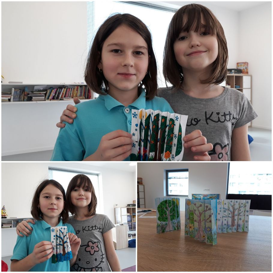 Znáte agamograf? Je to papír složený do harmoniky a z každé strany na něm vidíte jiný obrázek. Agamograf není těžké vyrobit. Děti potřebují pozornost při vybarvování. Není to tak jednoduché, jak to vypadá. Je obtížně představit si rozdělený obrázek v celku. Děti se s radostí pustily do práce a výsledek je dobře vidět na fotkách.