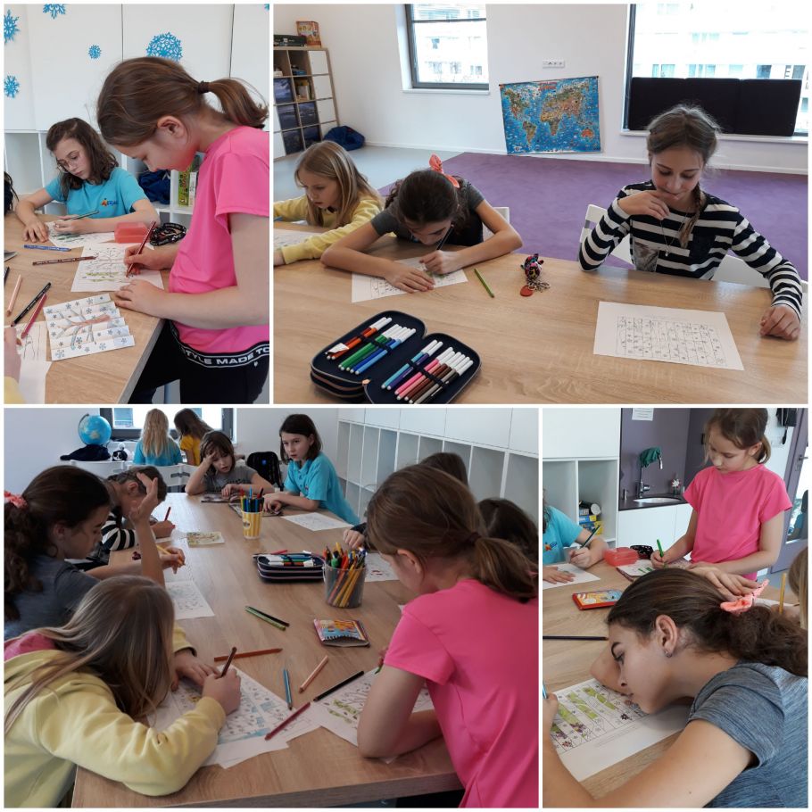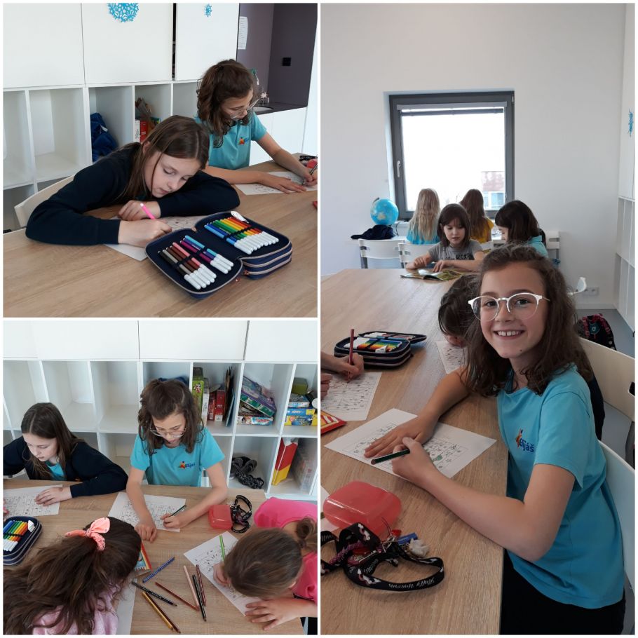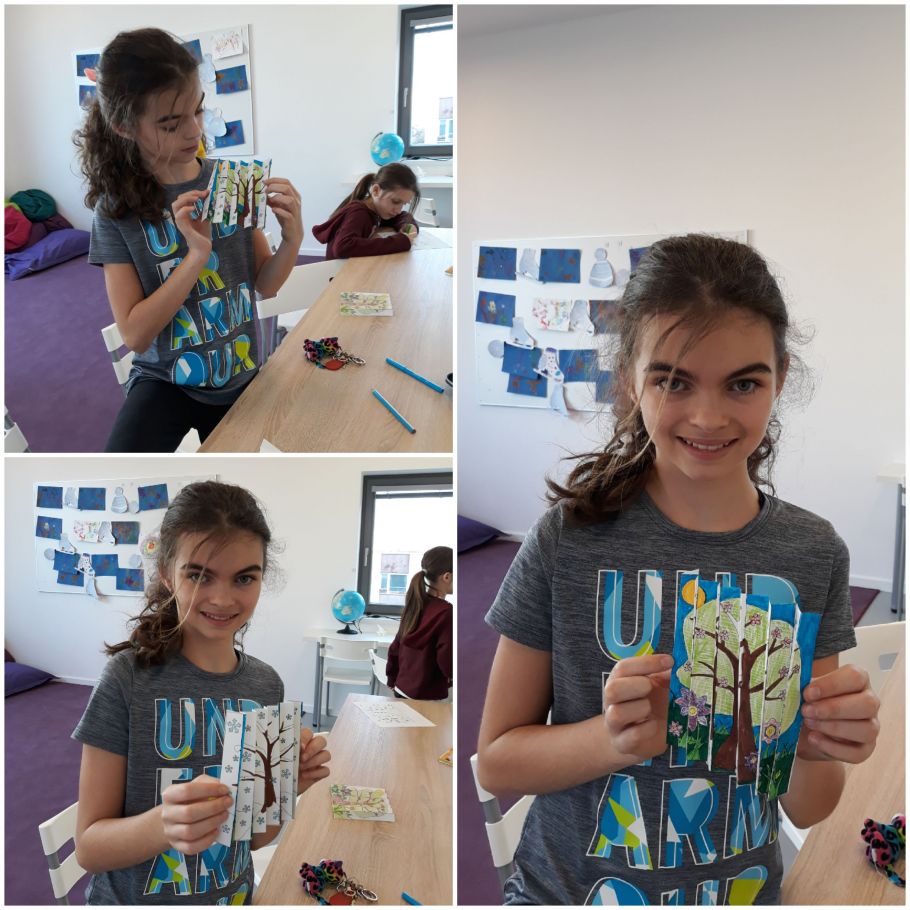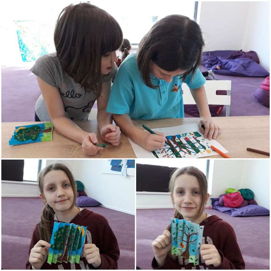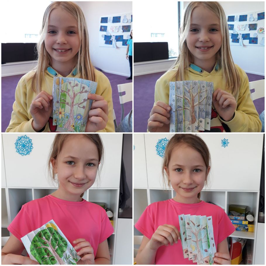 Znáte agamograf? Je to papír složený do harmoniky a z každé strany na něm vidíte jiný obrázek. Agamograf není těžké vyrobit. Děti potřebují pozornost při vybarvování. Není to tak jednoduché, jak to vypadá. Je obtížně představit si rozdělený obrázek v celku. Děti se s radostí pustily do práce a výsledek je dobře vidět na fotkách.