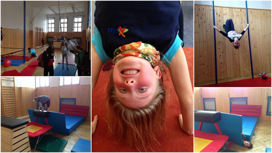 Uplynulý měsíc březen měl nejenom dostatek fialek pro Marušku, ale i spoustu krásných a slunných dnů pro nás. Někteří však tolik slunného štěstí najednou po tolika týdnech zamračeného čekání neunesli, což se viditelně podepsalo nejvíce pokřivením obličejů některých žáků do nejzrůdnějších tvarů a grimas. Kromě bouřlivých venkovních oslav jsme oslavovali i v tělocvičně nejrůznějšími tanci a popěvky. Viset hlavou dolů z tyčí a hlasitě se u toho smát, anebo přeskakovat kozu boční vrutem střemhlav k zemi patří k jedněm z nich. Lidem nezasvěceným se toto chování dětí může zdát jako zlobivé, příliš hlučné, dokonce až nevychované, ovšem nenechte se mýlit, jedná se o velmi propracovaný a soustředěný druh tanečních pohybu a vydávání hrdelních zvuků pouze dokresluje posvátnou atmosféru celého děkovného rituálu.