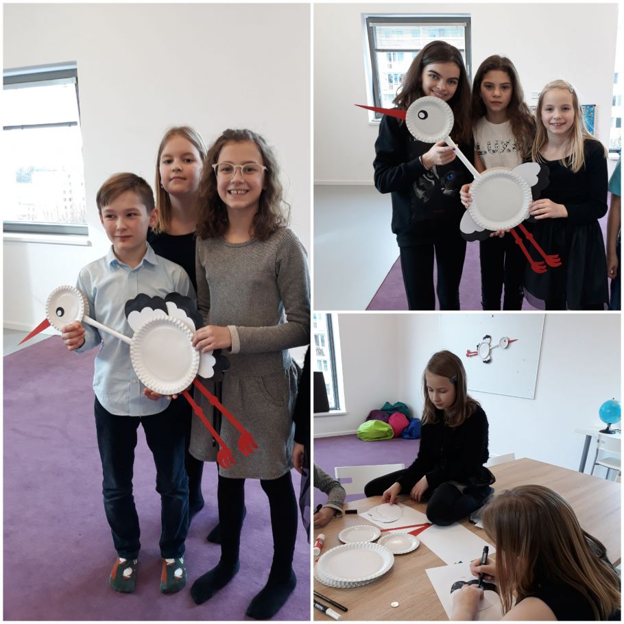 A tak jsme se rozhodli, že vyrobíme čápy jako výzdobu na chodby v naší družině. Byla to pěkná skládanka, ale my jsme to zvládli.