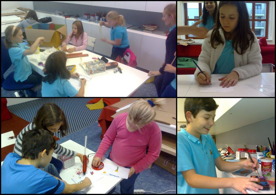 Děvčata ze čtyřky se rozhodla zkusit postavit nový bunkr, a tak jsou všichni chvíli v jednom a chvíli ve druhém. Taky zkouší stavět model domečku z kartonové krabice. Už jsme ve fáze výroby nábytku a obrazů. Párkrát jsme se pokusili k tomu něco nahlas číst. Snad to prosadíme.