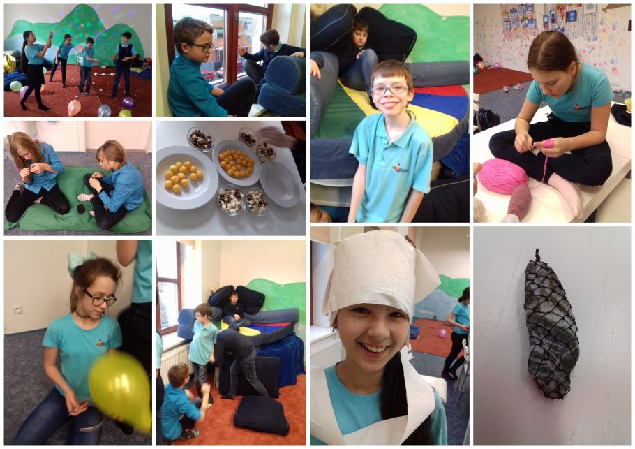 Nejdřív hráli všichni společně pinkanou s míčky, které nám v družině zůstali po malé včerejší párty, bylo potřeba vybít nahromaděnou energii. Po obědě jsme četli příběh z naší dobrodružné knížky o Vyhraném závodě, bylo to o hře fair play a o tom co je pro nás v životě důležité. Děti, jak mají zvykem příběh ztvárnily pantomimicky. Pak jsme popřáli a dali jsme hobla našemu oslavenci Jonášovi. Na to se chlapci pustili do stavby tvrze a děvčata drátkovala kamínky, háčkovala a malovala či vybarvovala obrázky se zimními sporty.