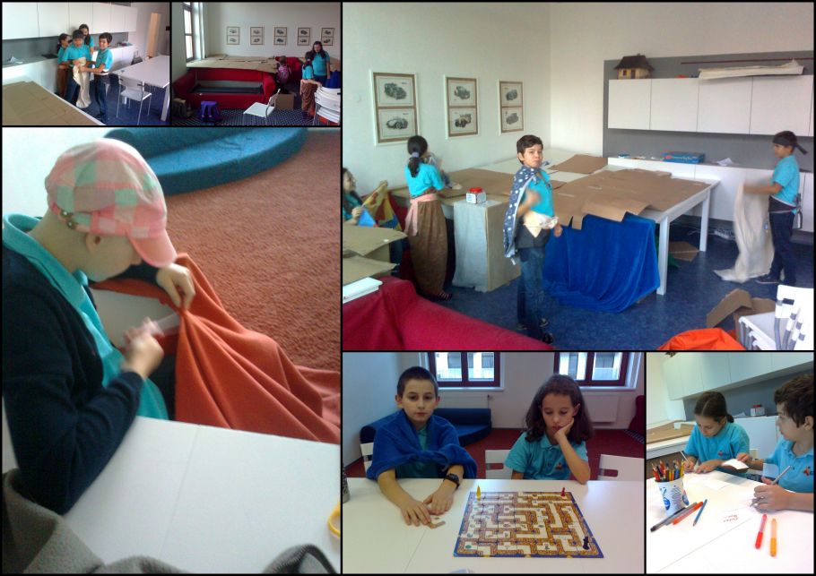 První koláž fotek ukazuje, jakou radost dokážou udělat staré hadry. Dají se omotat kolem těla, pověsit jako plášť, nebo zavázat jako čelenka. Okamžitě se nacházíme ve světě postav hrdinů a bojů za spravedlnost.