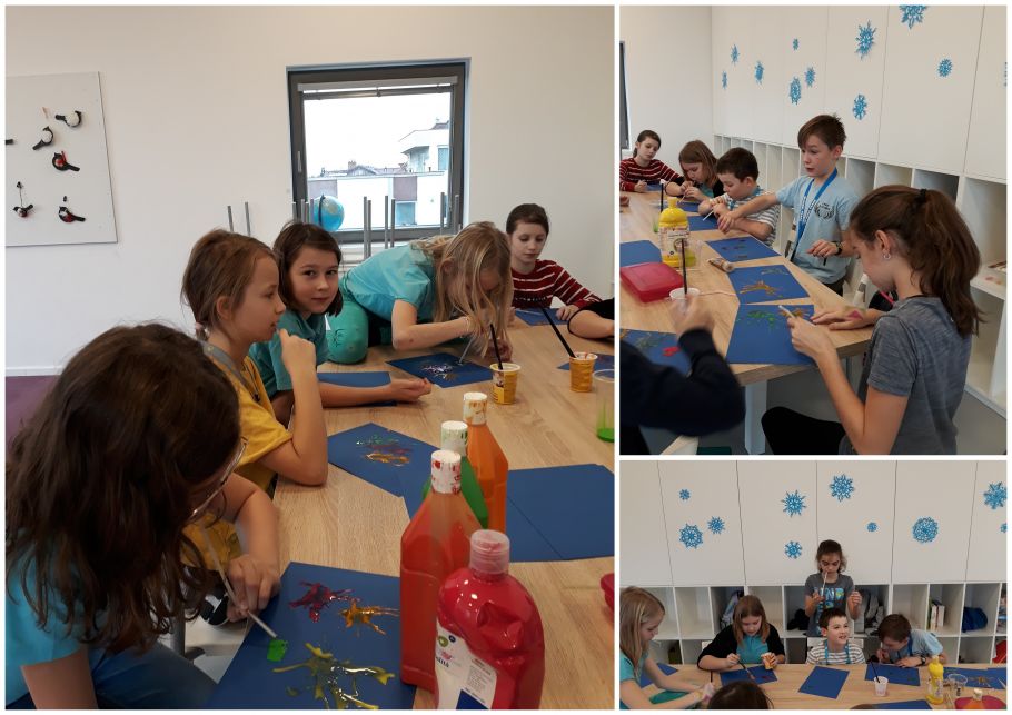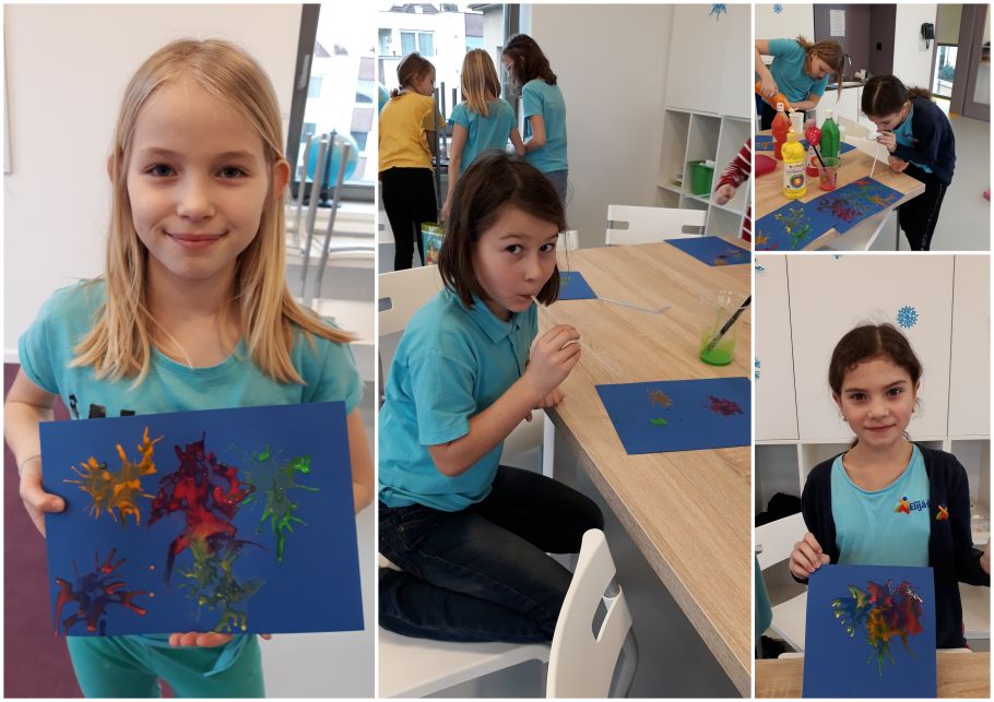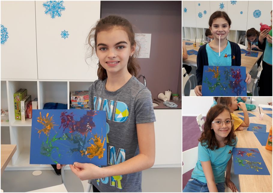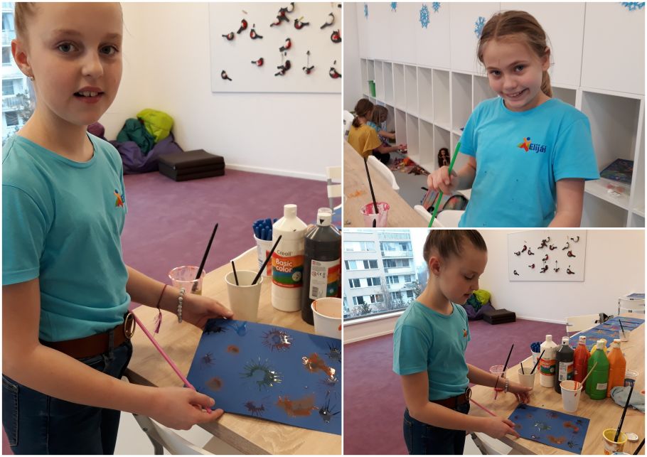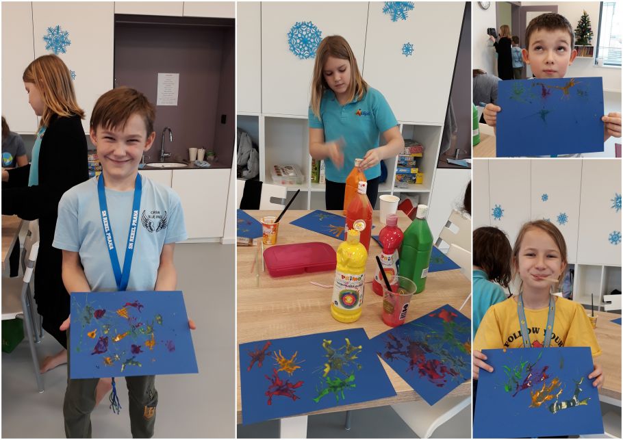 Na tmavý karton, co představuje noční oblohu, jsme přidali trochu jasných barev a rozjeli svou nápaditost a ohňostroje byli na světě. Podívejte se na ně, jak jsou hezké.