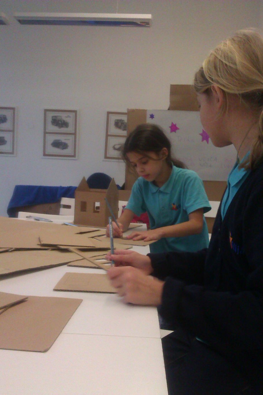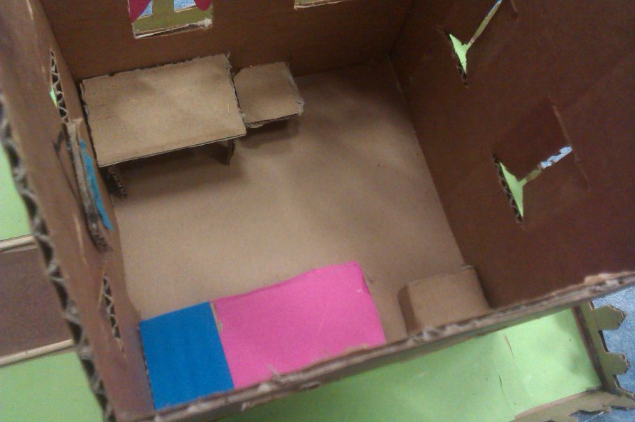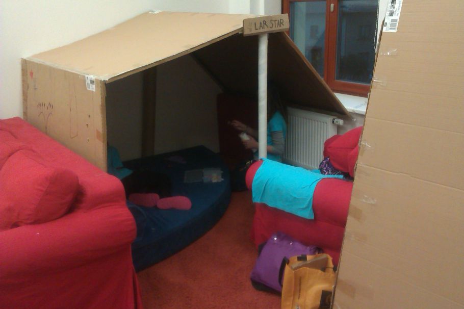 Vnitřní výzdoba domečku děvčat ze čtyřky. A tady se učí origami.