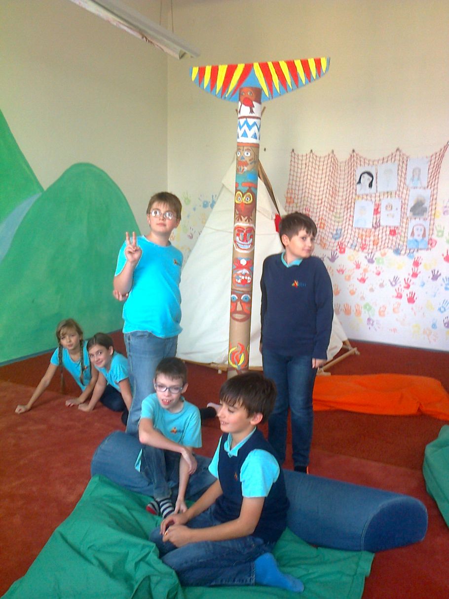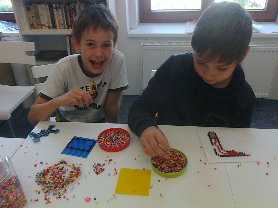 V uplynulém týdnu vedla jako nejoblíbenější aktivita skládání korálků, děti si skládaly vlastní loga, vlajky i zvířátka. Po obědě čteme stále na pokračování knihu Indiánské pohádky. Pohled indiánů na různé aspekty života porovnáváme s tím, jak je vidí Bible. Ať už jde o stvoření světa, zrození života, příchod zla na svět a jiné. Na jeden z příběhů děti spontánně vytvořily i narativní pantomumu a pěkně jsme se u toho zasmáli. Samozřejmě jsme i chodili ven. Děti hrály oblíbené hry jako je Vracečka, Trpasík, Láva, Školka se švihadlem a jiné. V tomto týdnu došlo i turnaj ve stolním fotbale ve kterém se utkaly skupinky našich dětí s týmy ze školního klubu. Podvečer jsou mnohé děti vzorné a píšou si domácí úkoly, aby doma večer už měly klid. Došlo i na veselou hru Twister či Slovní fotbal. Do přírodopisu jsme se začali učit názvy květin a léčivých bylin. Někteří jich z naší sbírky čtyřiceti nejznámějších již dvacet rozeznají.