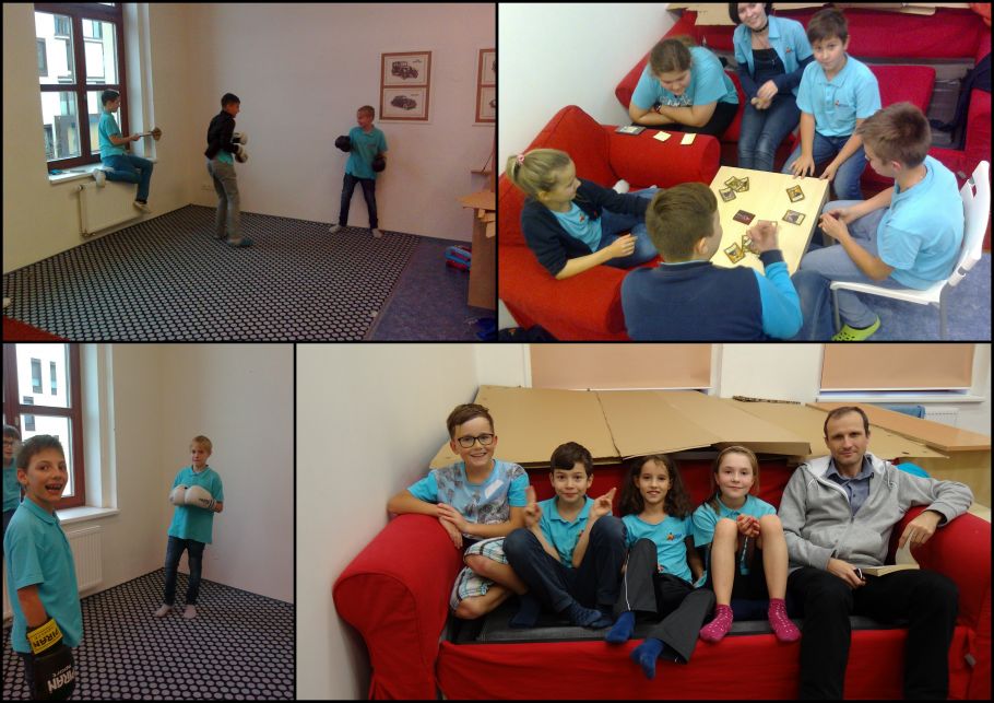 Za poslední dva týdny jsme prožili chvíle různé, ale většinou spokojené. Hodně jsme si hráli. Kromě logika jsme zkusili karty, opět je zajímavý milostný dopis a zkusili jsme i koňské kvarteto. Kartonové krabice, které jsme původně testovali zdali pojmou člověka, se dokážou proměnit na zajímavé domečky s vyzdobeným interiérem. Některé hry si umí děti vymyslet i sami. Například na babylonskou věž, ze které se dá skákat nebo klouzat. Anebo na koně, které nosí své pány. Také jsme zkusili četbu z knížky. Při tvoření to jde, ale jinak ani náhodou.