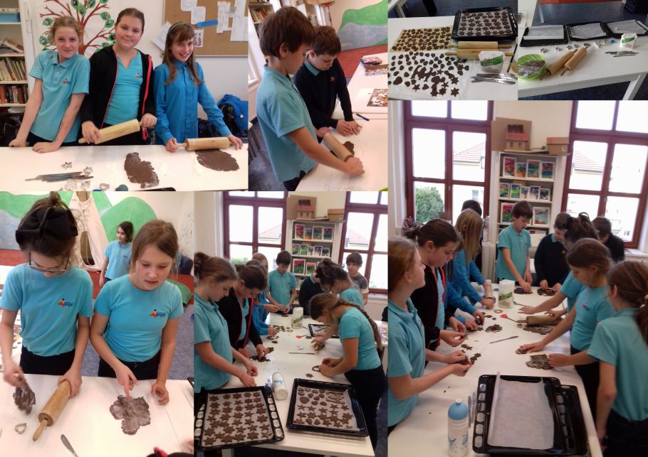 Dneska byl sladký den. Proměnili jsme se v cukráře a cukrářky a z výborného perníkového těsta jsme napekli lahodné perníčky. Musíme přiznat, že jich pěkná hromádka skončila v mlsných pusách mladých cukrářů a ještě jich asi pár zmizí při zdobení, na druhou stranu jsme zjistili, že jsou opravdu výborné a na načem jarmarku si třeba i vy pochutnáte. Pak už jsme si jen povídali při skládání puzzle a někteří si četli svoje knížky.