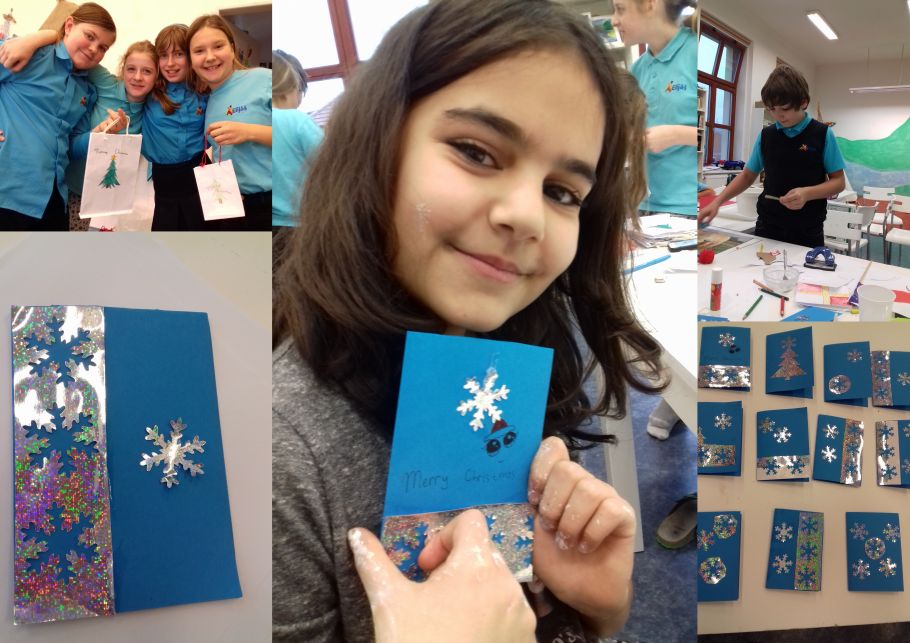 Ještě přikládám pár fotek z pátečního vyrábění přáníček a tašek na jarmark.