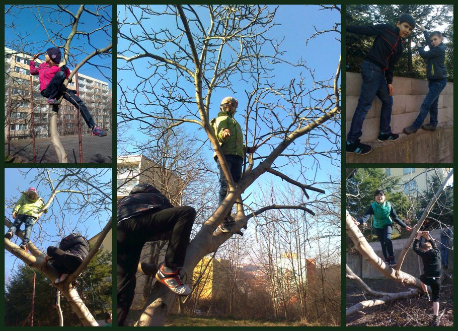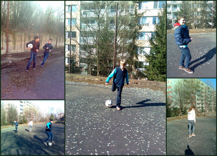 Čtvrteční odpoledne bylo natolik hlučné, že jsme opustili budovu a šli na nedaleký pozemek se dvěmi asfaltovými hřišti. Některé děti objevili super zábavu, kterou poskytuje příroda. Škoda, že jí nemáme kolem sebe více.