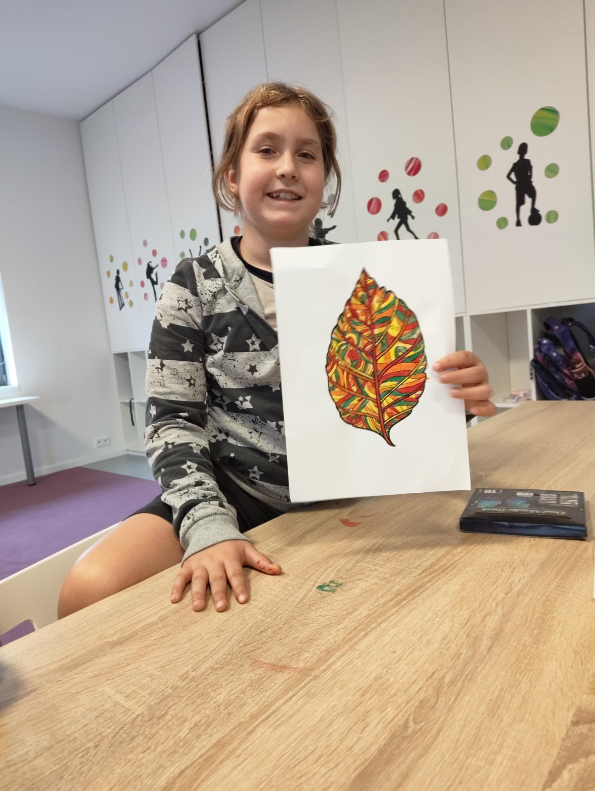 Podzimní čas jsme si ve školní družině užili naplno. Děti se s chutí pustily do tvoření – vybarvovaly podzimní listí v nejrůznějších odstínech žluté, oranžové i červené, a jejich krásné práce nám teď zdobí družinu i školní chodbu. Nechybělo ani veselé vyrábění dýní z balónků, při kterém jsme se všichni hodně nasmáli a vznikly opravdu povedené podzimní dekorace.