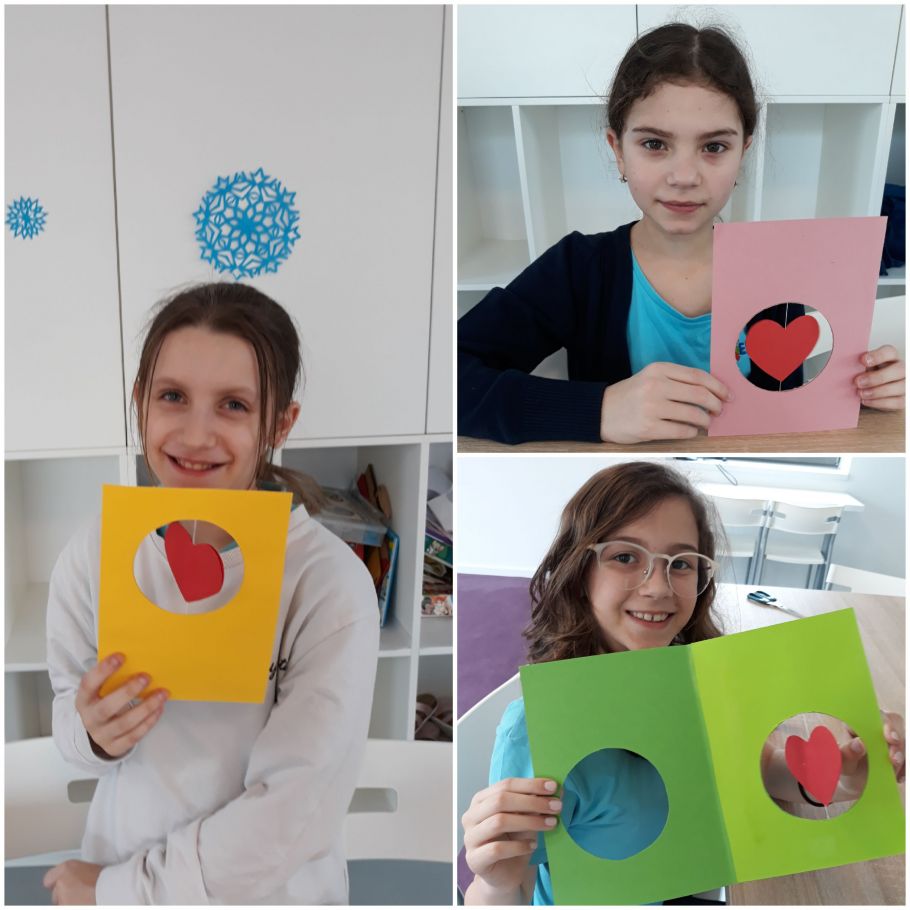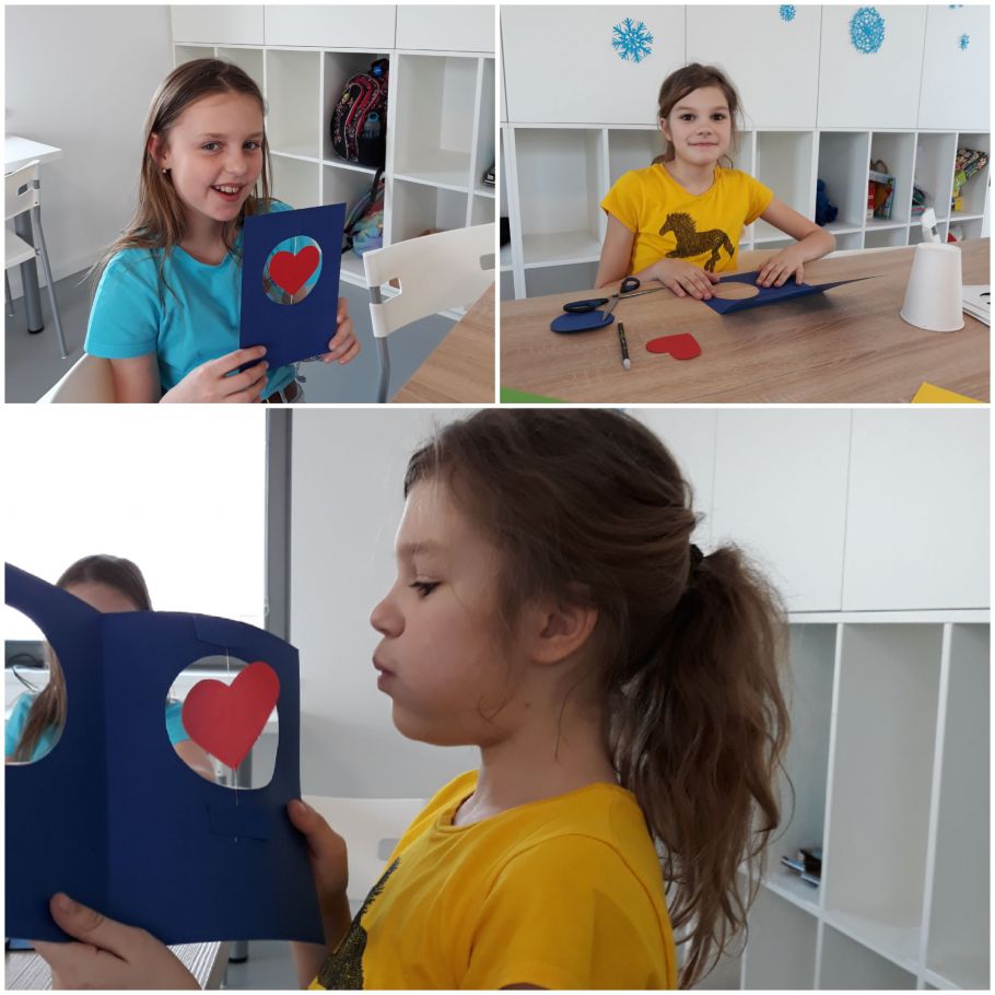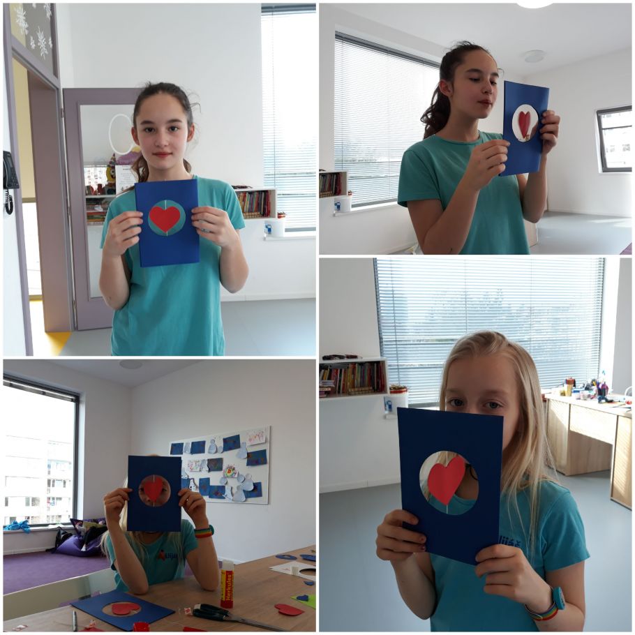 Dnes jsme se rozhodli vyrobit plastickou pohlednici se srdíčkem. Na první pohled tato pohlednice vypadá moc jednoduše. Děti byly zvědavé, jak se toto srdíčko uvnitř pohlednice může točit ve vzduchu. Během tvorby jsme se seznámili s výrobou pohlednic. Na výrobu pohlednic se používalo dřevo, plast, kov, skleněná drť, textil, zlatá a stříbrná folie i lidské vlasy, obvykle dekorace hlav žen a dívek. Dříve se používaly vzácnější techniky jako například litografie, kdy bylo možné z jedné předlohy vyrobit jen pár kousků. Naše pohlednice se nám povedly a děti si je s radostí vzaly domů ukázat rodičům.
