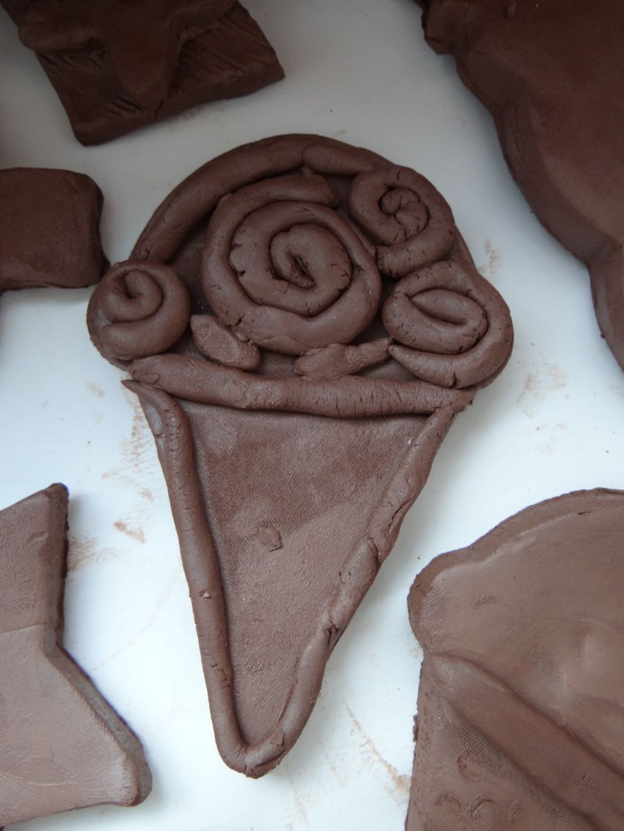 Úterý je poklidný den, kdy nás není tak hodně, takže se můžeme věnovat i nějaké delší smysluplné činnosti. Dnes jsme opět zkusili keramiku. Nadělali jsme z hlíny placky a formičkami na cukroví vyráběli tvary. Když je vypálíme, tak je ještě načančáme barvami.