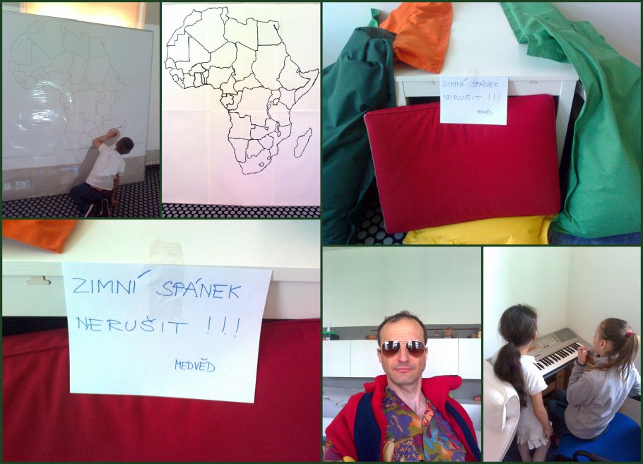 V pátek jsme malovali mapu Afriky na papíry ve velikosti 2x2m. S výsledkem jsme spokojeni.