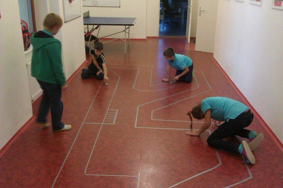 V pondělí jsme začali se stavbou dráhy pro soutěž malých aut a přes týden jsme ji každý den využívali. Snad každý prožil překvapení, že i tak jednoduché činnosti, jako posílat autíčko po dráze, se musíme učit.