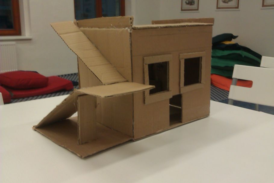 Ze školních zásob kartonu jsme opět zkusili něco udělat s obydlím pro děvčata (foto přijde).