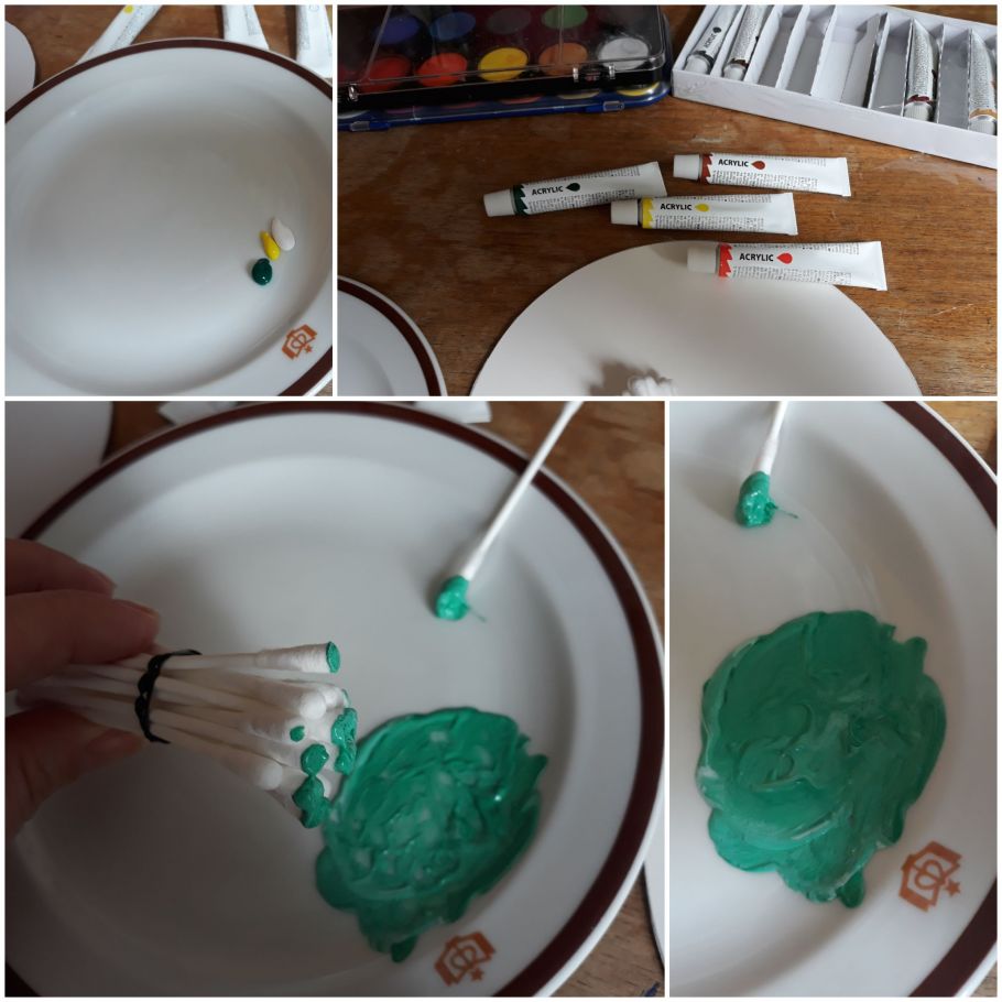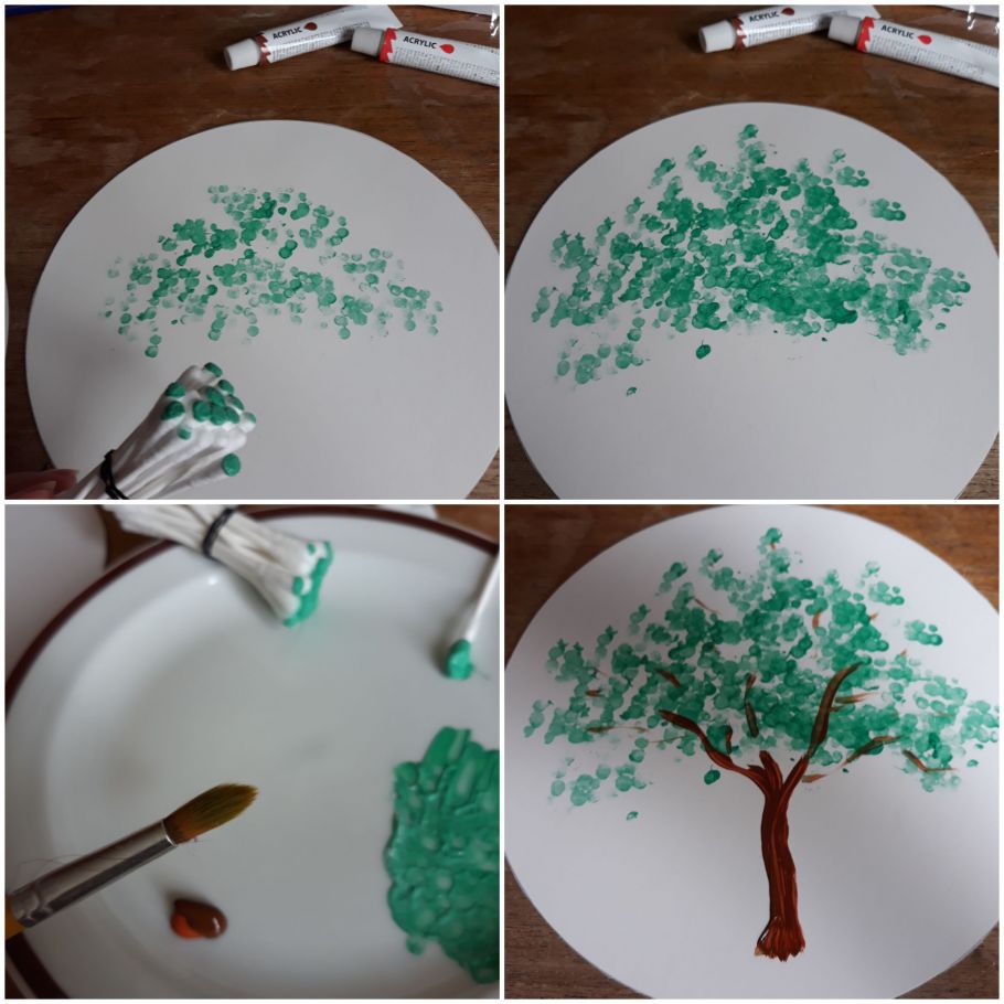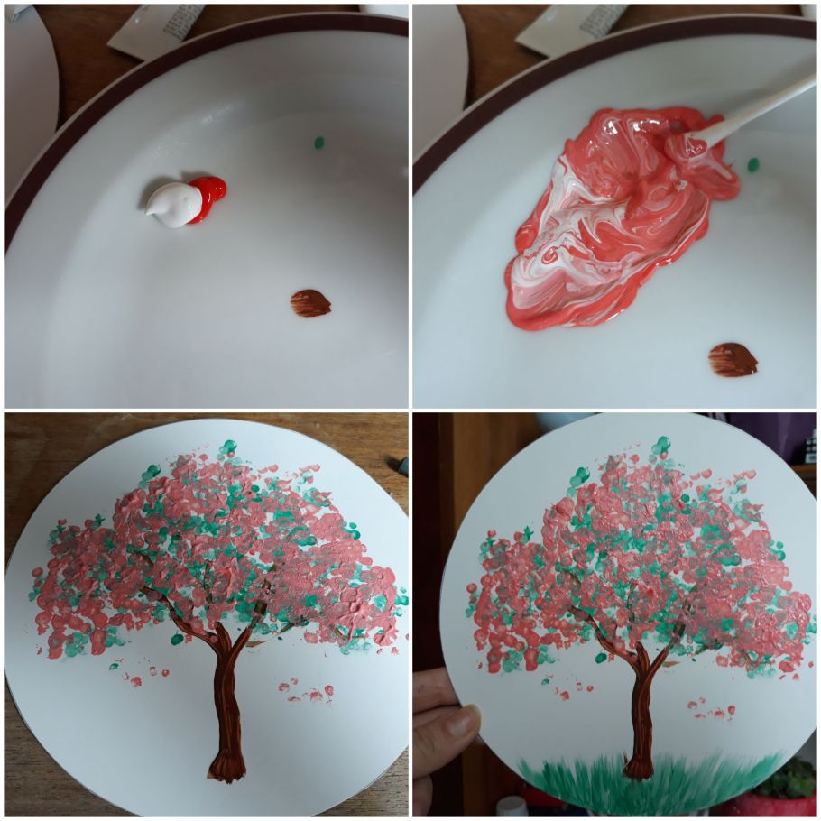 Zkuste nakreslit sakuru doma. Tento obrázek jsem nakreslila za pomocí hygienických tyčinek a akrylových barev. Ale vy můžete použít i tempery. Z kartonu jsem vystřihla kruh, což vy můžete kreslit i na čtverečku. Asi 10 nebo 15 tyčinek jsem svázala gumičkou a na paletě nebo talířku namíchala zelenou a bílou barvu. Do namíchané barvy jsem namočila tyčinky a ťupala na papír. Dejte první zelené vrstvě uschnout a dejte se do míchaní růžové, bílé a fialové barvy. Jak je vidět na obrázcích moje sakura vykvétá bohatými růžovými květy. Pokud budete chtít jen růžovou sakuru tak použijte jen růžovou barvu. Hnědou barvou dokreslíte kmen a zelenou – trávu. Tato tvorba mě moc bavila tak doufám že i vám se to bude líbit.