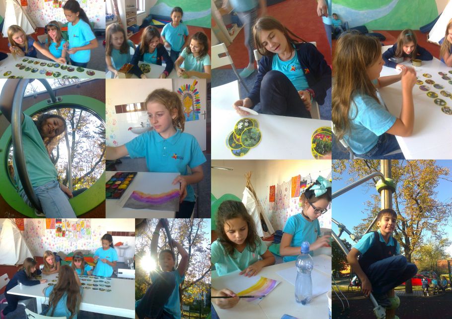V pondělí bylo moc hezky, rozdávali jsme odměny za naše bodování a děti se zase s nadšením pustily do další práce. Zkusili jsme si novou techniku. Stříkání barvy. Jako šablony jsme využili suché javorové listy. Pak jsme běželi ven, protože tam bylo jako v létě. Mezi tím někteří odešli na angličtinu a florbal a ani jsme se už do družiny nevraceli, jak se nám venku líbilo.