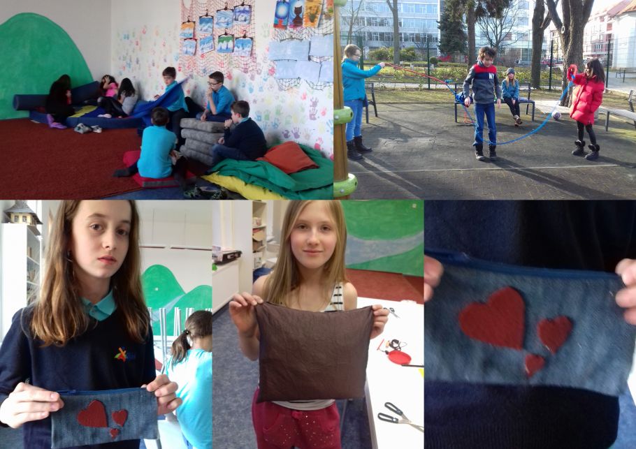 MInulý týden jsme začali šít, někdo polštářek, jiní plyšáčka a po víkendu byly děti plné elánu. Z nové koženky a rifloviny jsme začali vyrábět taštičky a pouzdra. Venku krásně po dlouhé době svítilo sluníčko, tak jsme vyběhli ven. poběhali jsme, skákali přes švihadla. Zjistili jsme , že nám trochu po zimě chybí trénik, tak doufáme, že už bude brzy hezky a venku budeme častěji. Kluci stavěli z lega a odpočívali, pobyt na vzduchu je nějak zmohl.