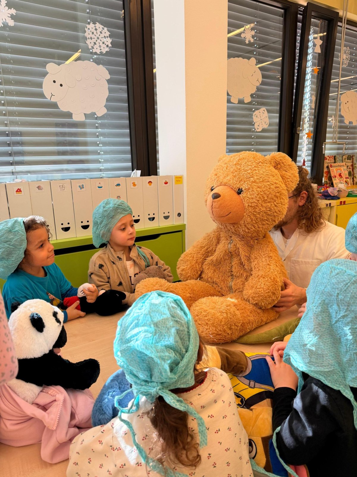 Děti si přinesou plyšáka, kterému dělají „doprovod“ při vyšetření a ošetření, čímž získávají pocit bezpečí a důvěry v bílé pláště.