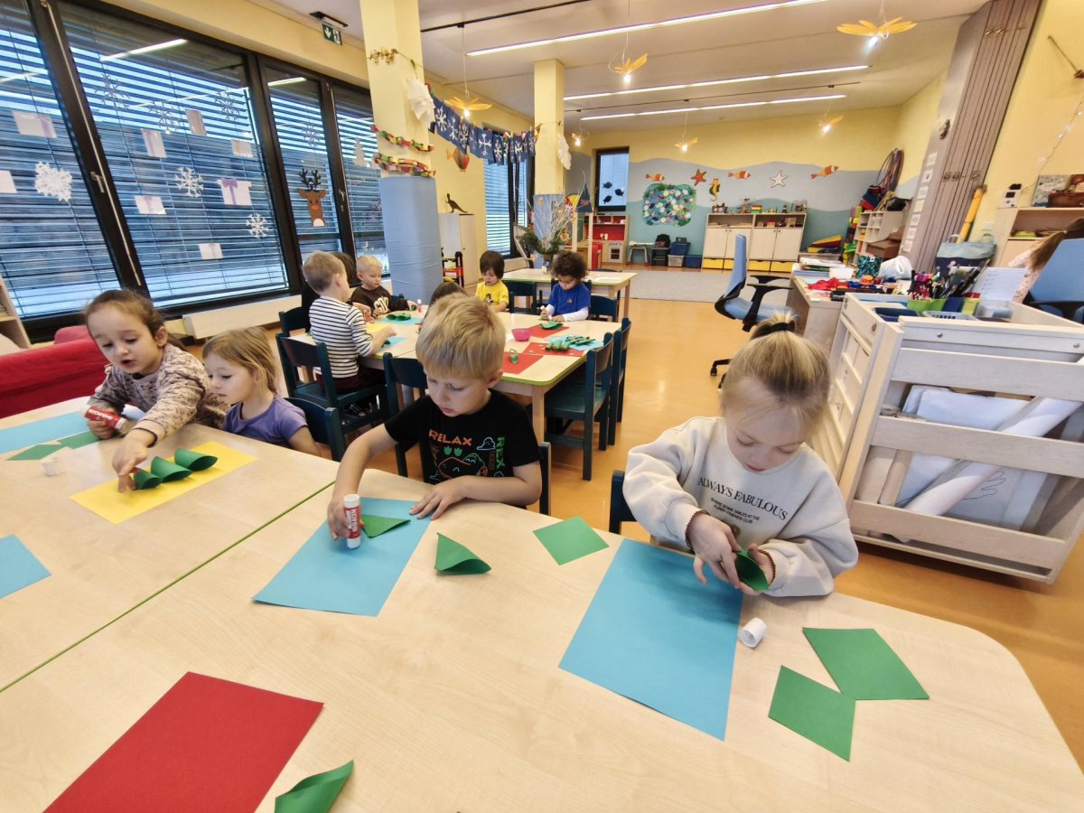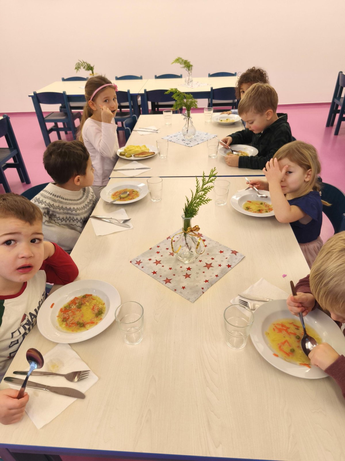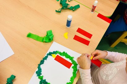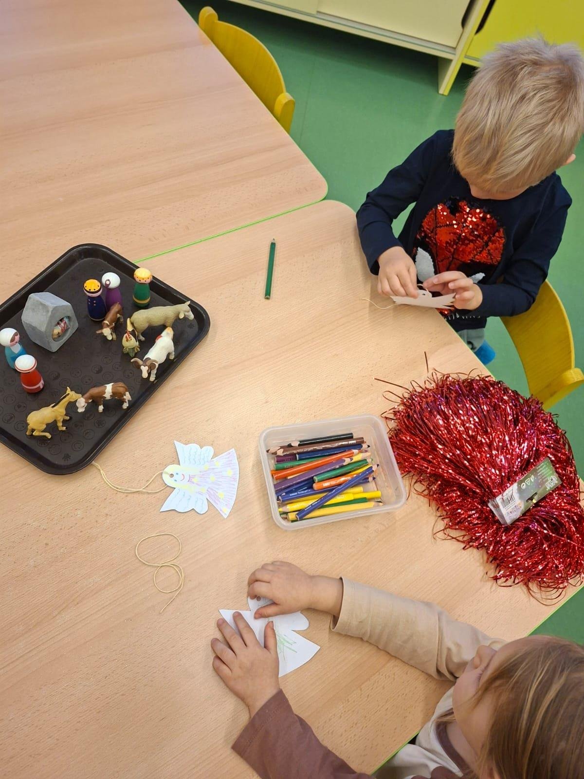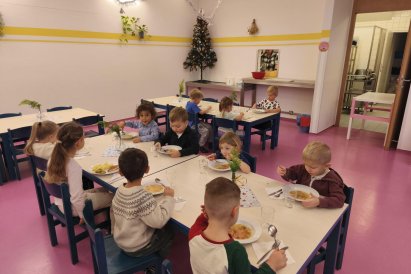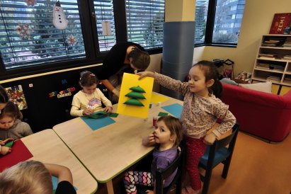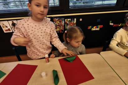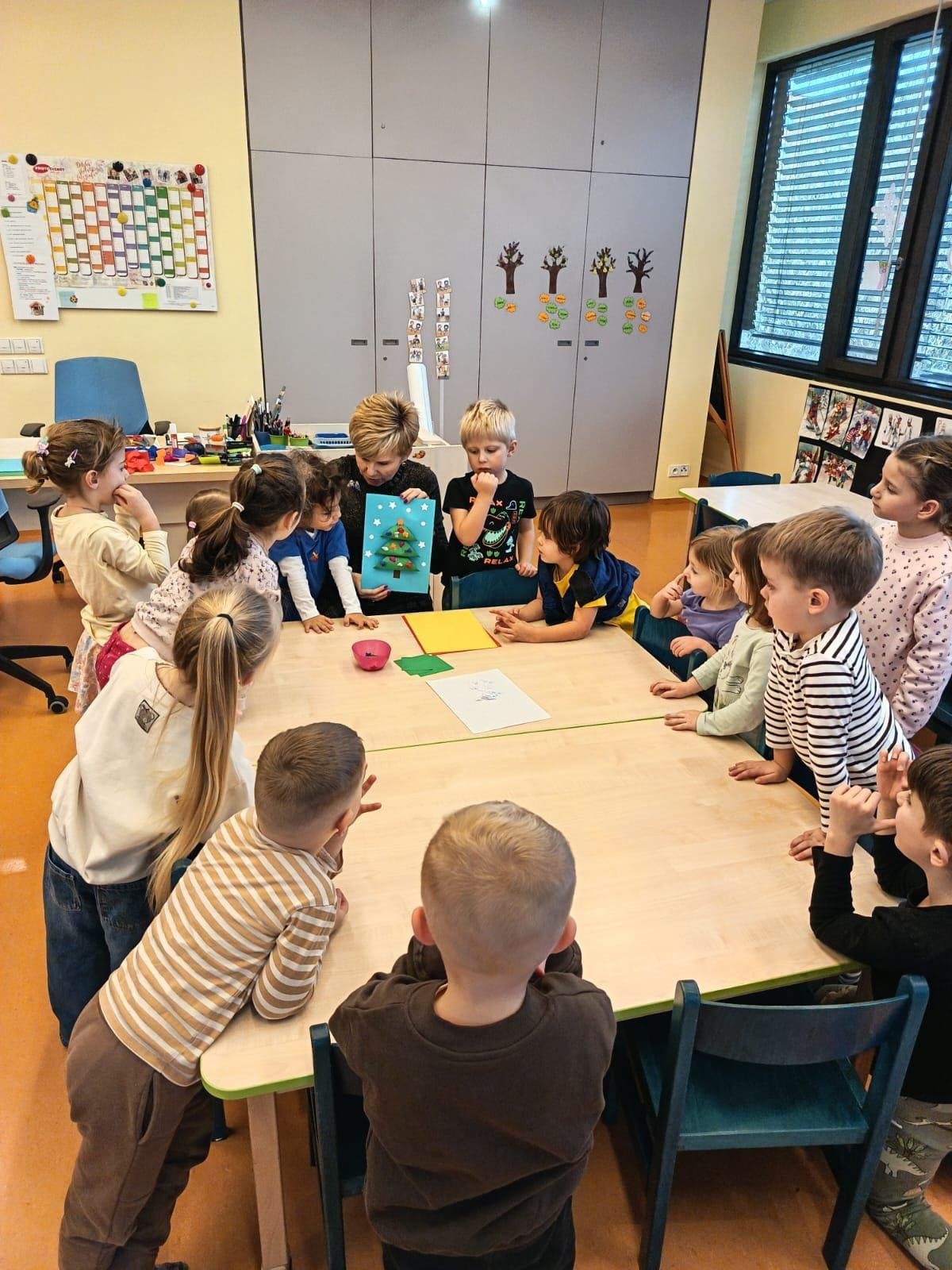 Povídáme si o Vánocích. Vyrábíme s vánoční tématikou, zpívané koledy. Měli jsme slavnostní oběd a přišla nás pozdravit i paní ředitelka..