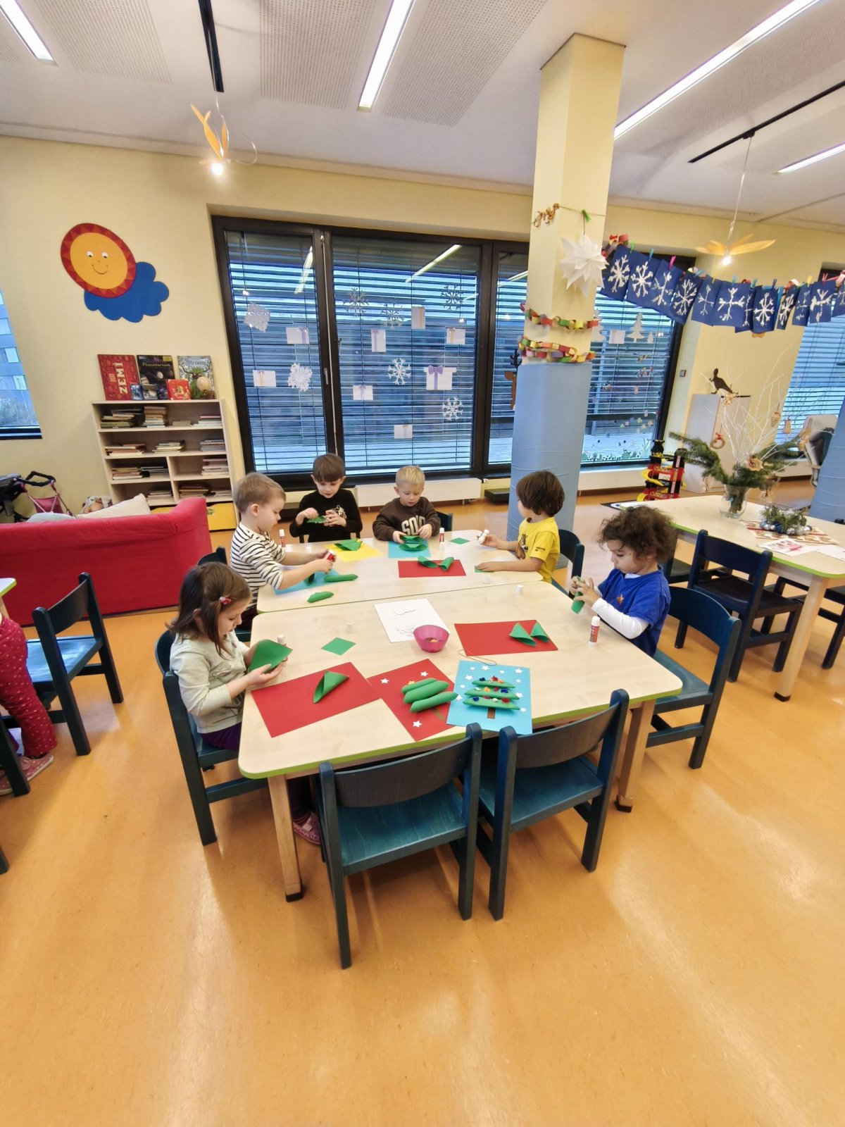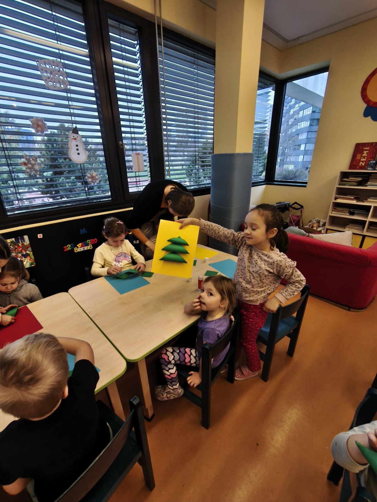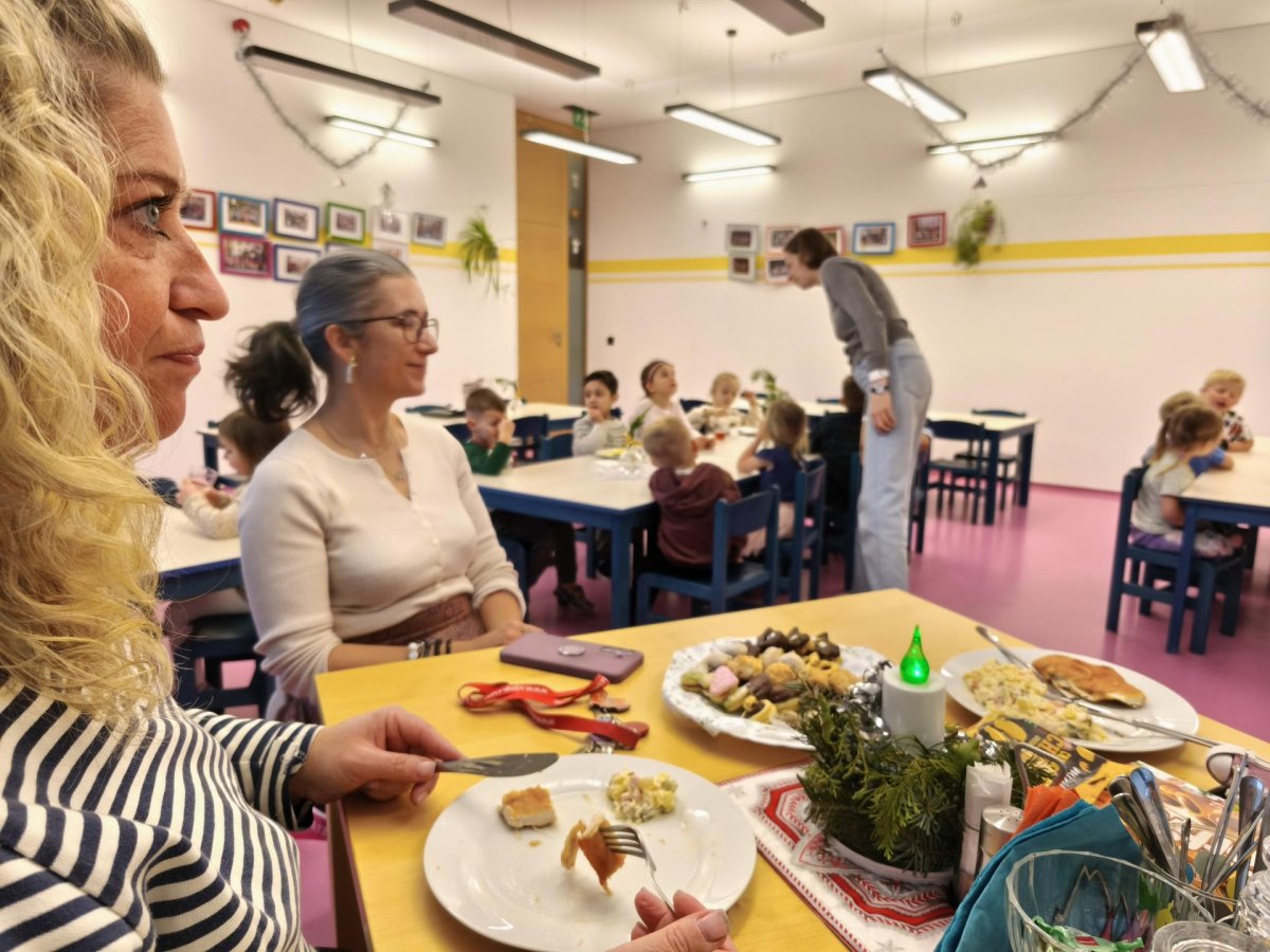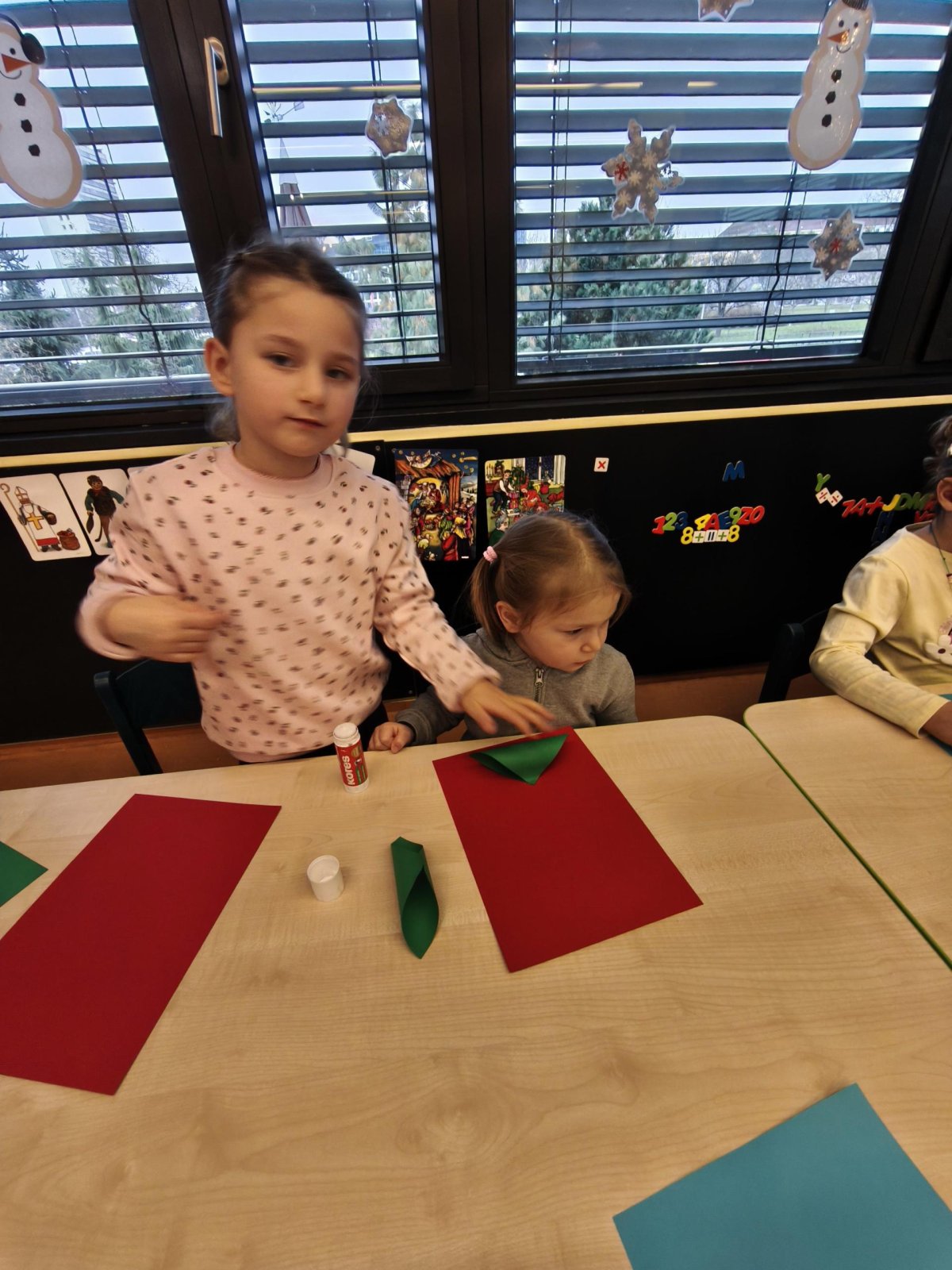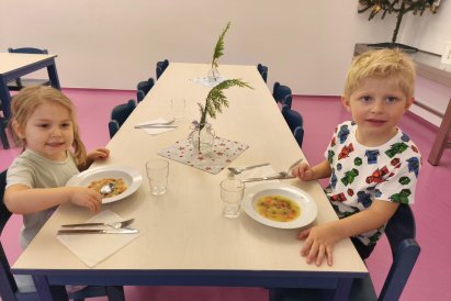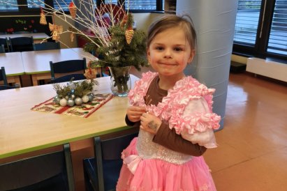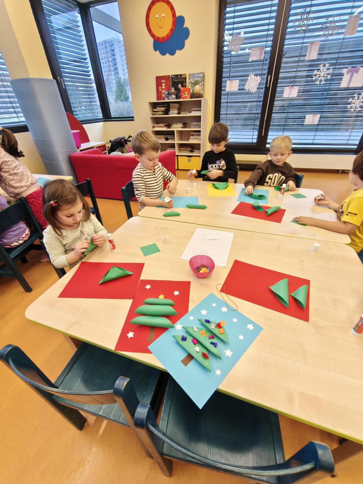 Povídáme si o Vánocích. Vyrábíme s vánoční tématikou, zpívané koledy. Měli jsme slavnostní oběd a přišla nás pozdravit i paní ředitelka..