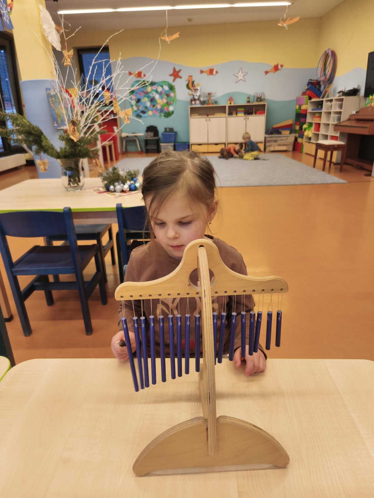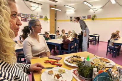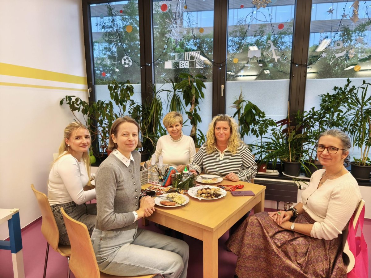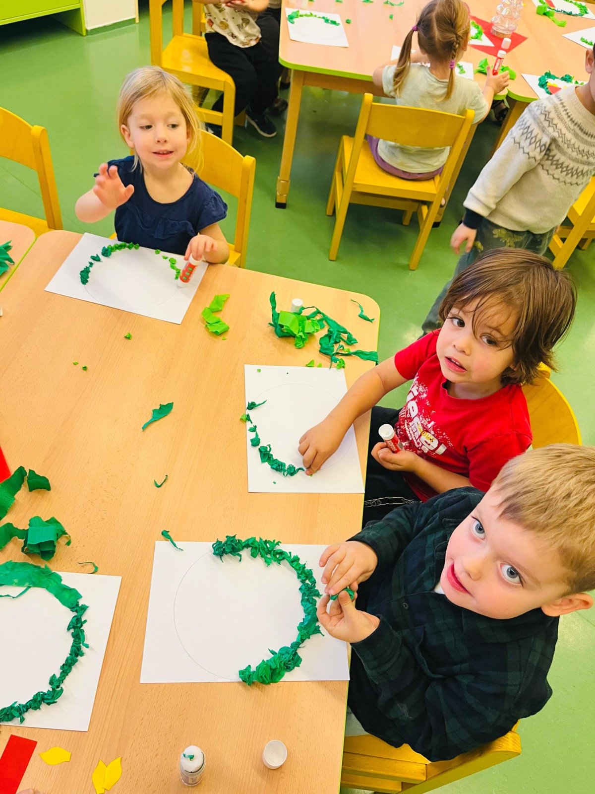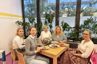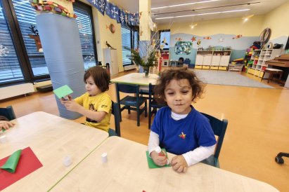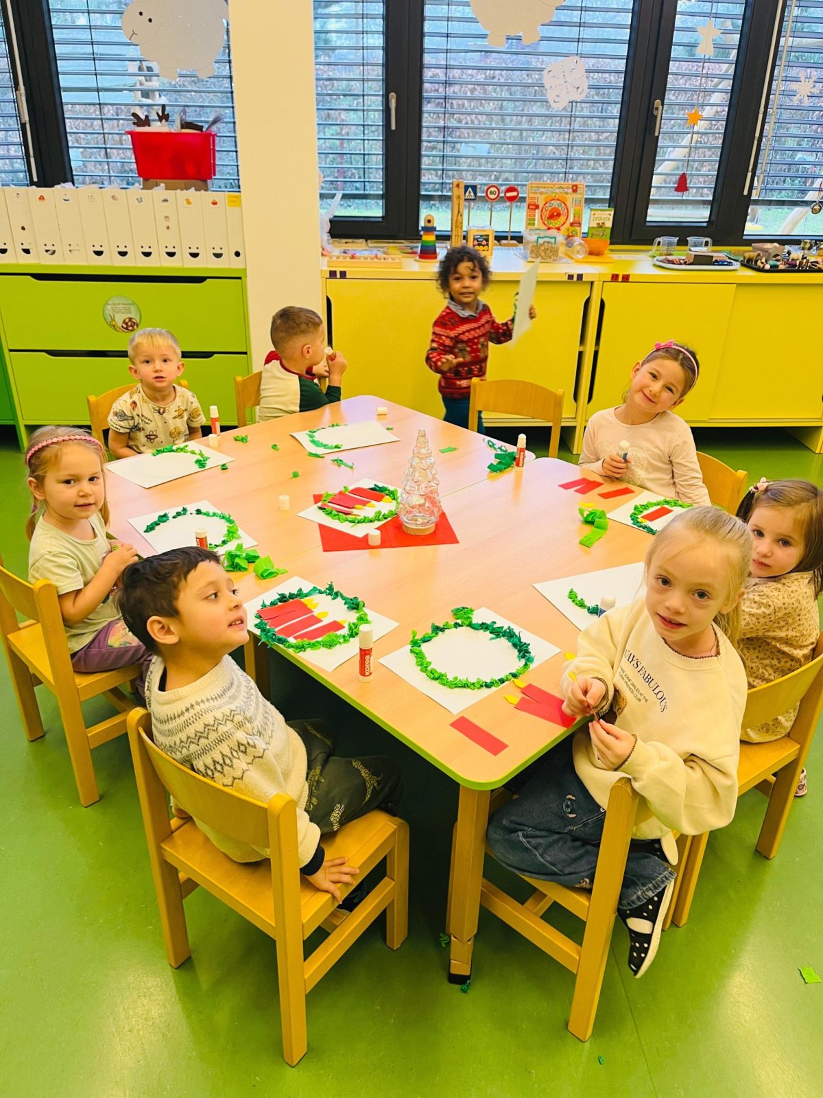 Povídáme si o Vánocích. Vyrábíme s vánoční tématikou, zpívané koledy. Měli jsme slavnostní oběd a přišla nás pozdravit i paní ředitelka..