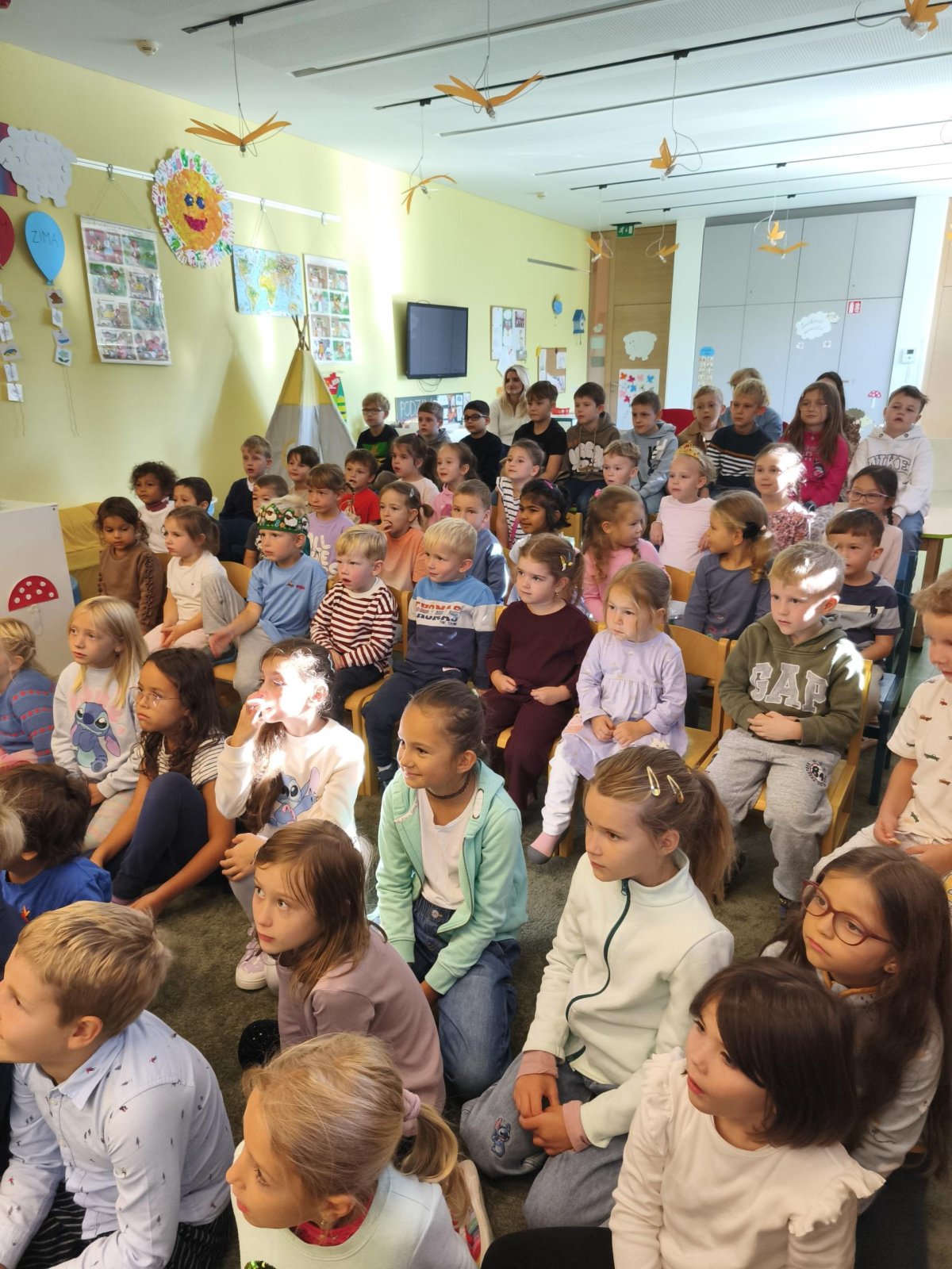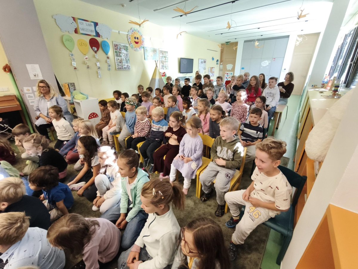 Poslední zářijový den jsme si zpříjemnili krásným divadélkem P. Šmída. Děti se i zapojily do představení a s nadšením i úžasem sledovaly pohádku.