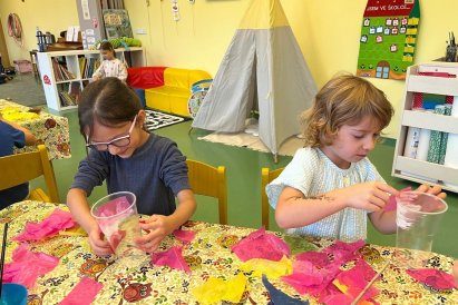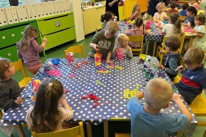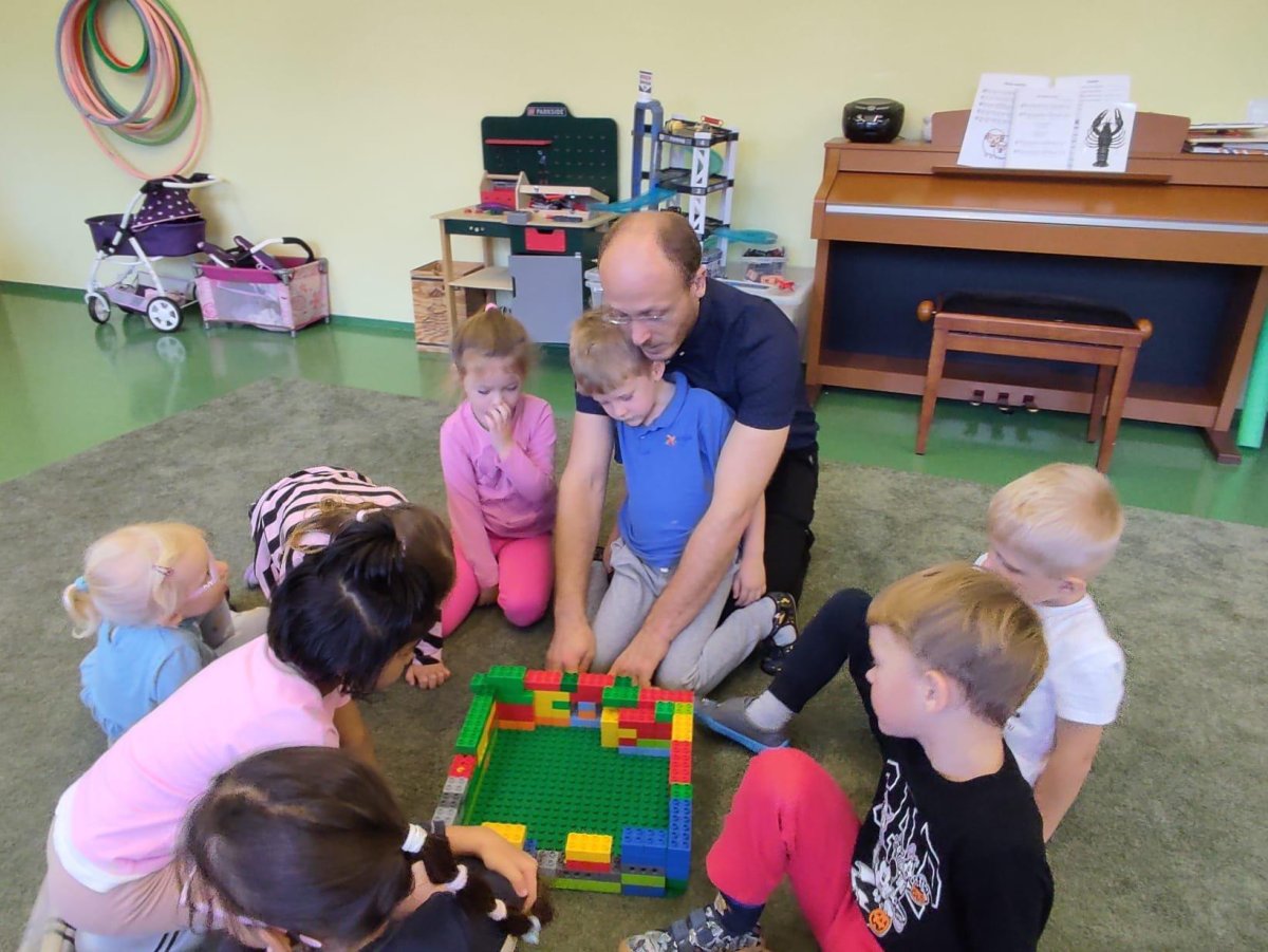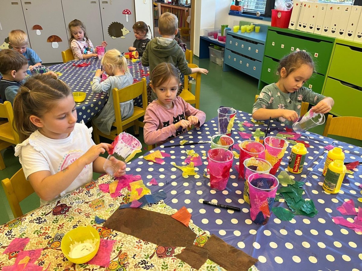 Oslavili jsme narozeniny, vidličkou tiskli ježky, s panem kaplanem stavěli Jeruzalém a vyrobili jsme si lampiónky na slavnost.