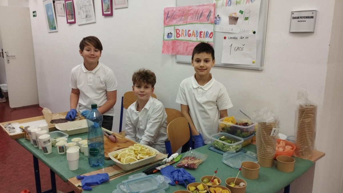 V duchu Brazílie si páťáci pro návštěvníky připravili fotbalový koutek, občerstvení s exotickými pochutinami, malování na obličej a mnoho dalšího. Páťáci byli moc šikovní! Sami pak samozřejmě navštívili stánky svých spolužáků z jiných tříd.