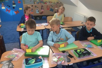 Žáci opět pracovali velmi pilně a snažili se. Už pomalu začínají číst, psát a počítat. Jsou velmi šikovní a aktivní. Celý den jsme si moc užili, nezapomněli jsme ani na spolužáky, kteří chybí a už teď se těšíme, až se opět v pondělí sejdeme.