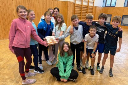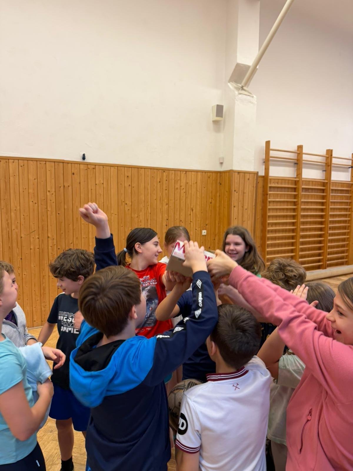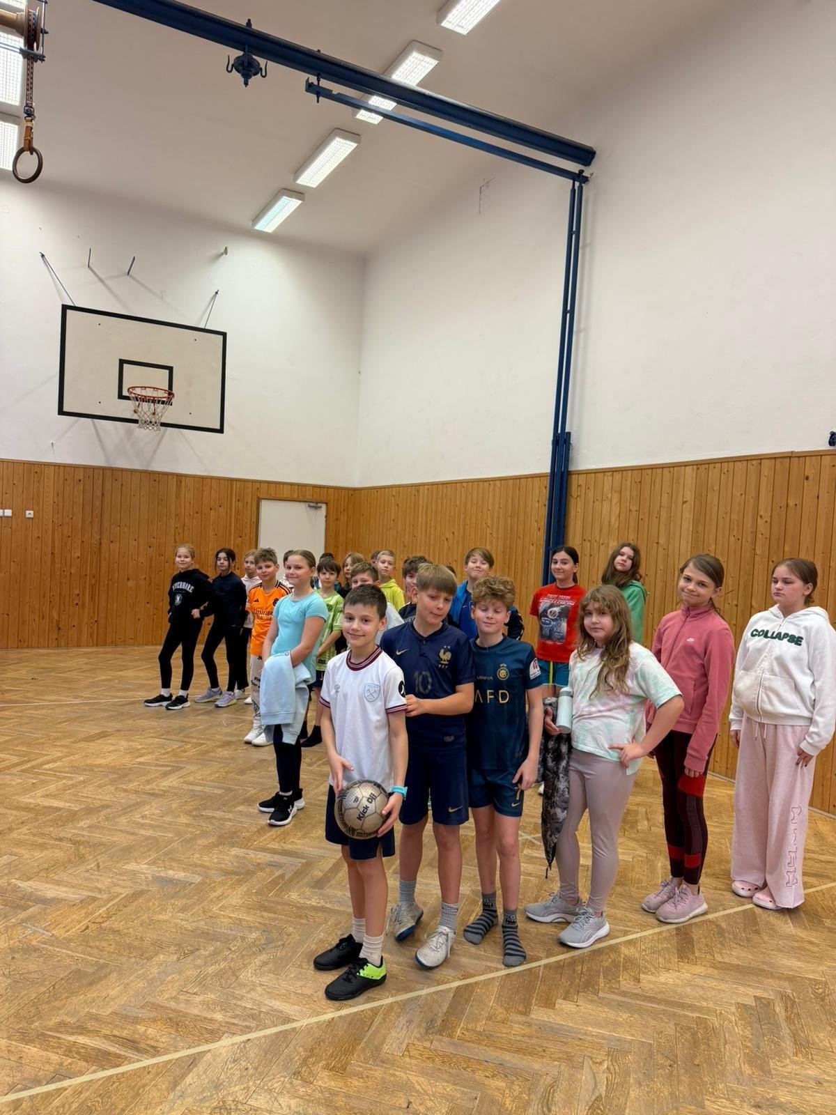 O den později jsme zažili sportovní den přímo v budově školy. Páťáci si v tělocvičně vybojovali putovní pohár z vybíjené, v hale se zúčastnili fotbalového turnaje pro II. stupeň (!!!zde získali nádherné třetí místo!!!) a někteří se zapojili do únikové hry připravené v dalších prostorách školy.
